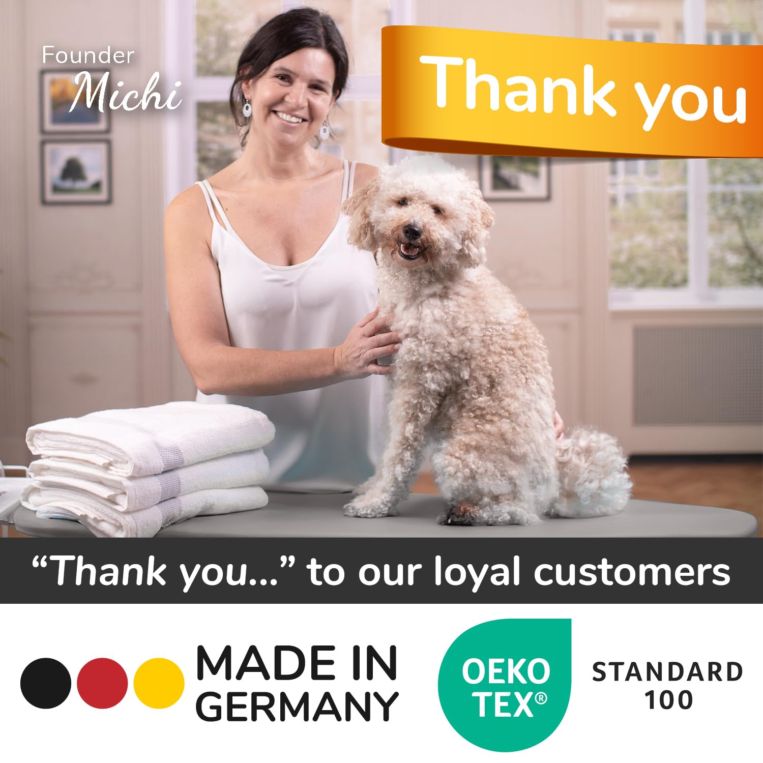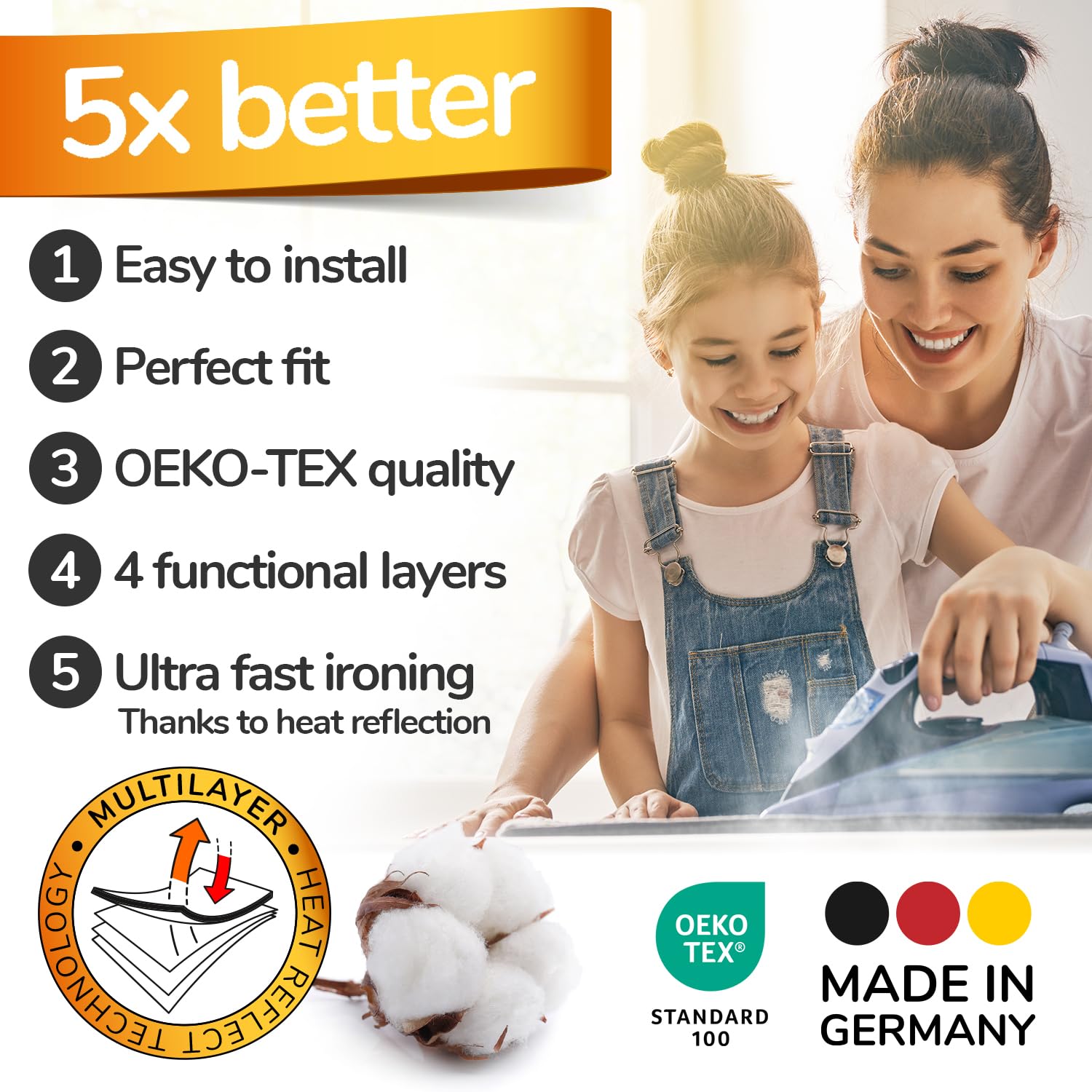 - ✅ MADE IN Germany - multi layers of foam and thick molton. Highest quality 100% cotton top layer and comfort padding. Optimal for crease and wrinkle-free ironing with heat from both sides.