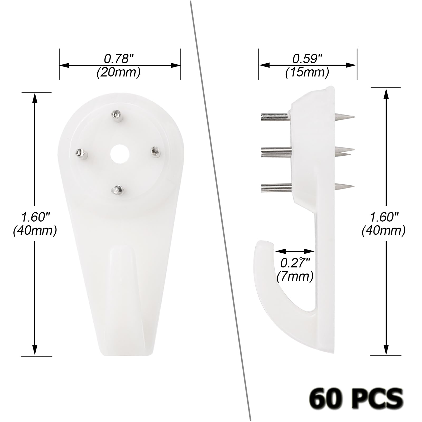 Suprom 60pcs Concrete Wall Hooks, Non-Trace Picture Hanger for Wooden/Stucco/Plaster/Hard Wall, No Damage or Drilling Picture Hooks for Hanging Picture, Artwork, Clocks