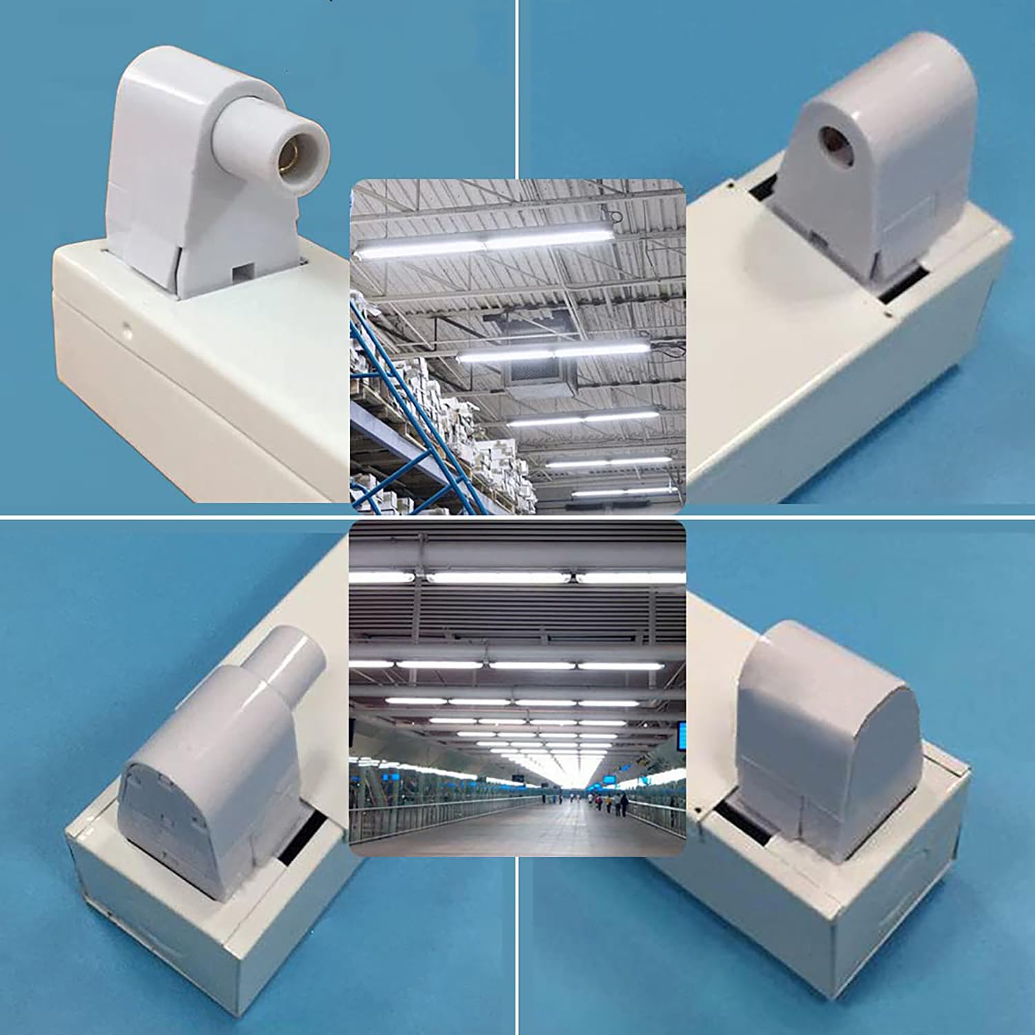 The lamp holder is suitable for T8 fluorescent tubes and LED tubes.