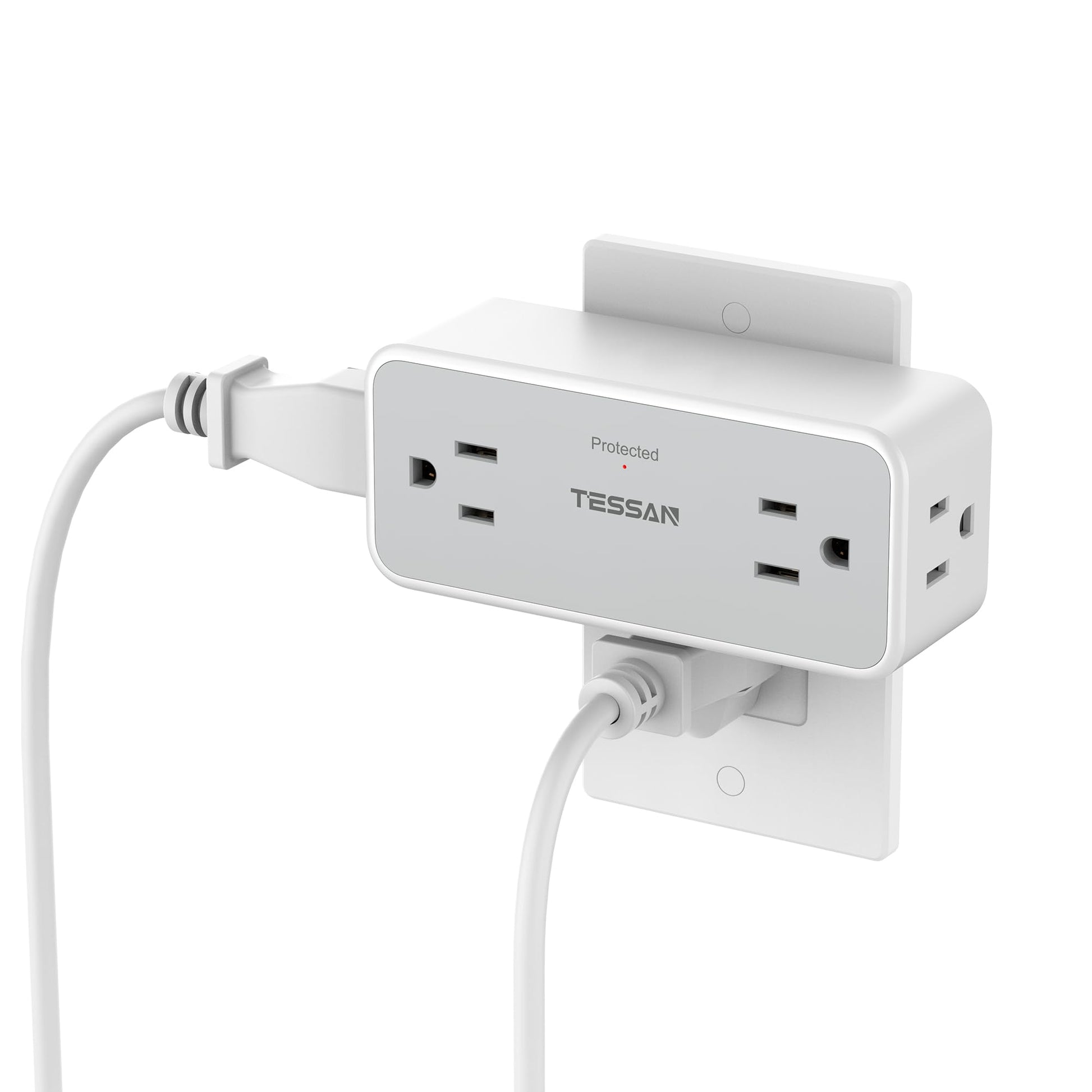 Surge Protector Outlet Extender, TESSAN 2100J Multi Plug Splitter with 4 Electrical Outlets, 3 Side Multiple Wall Plug Expander for Home Office Kitchen Dorm Room Essentials