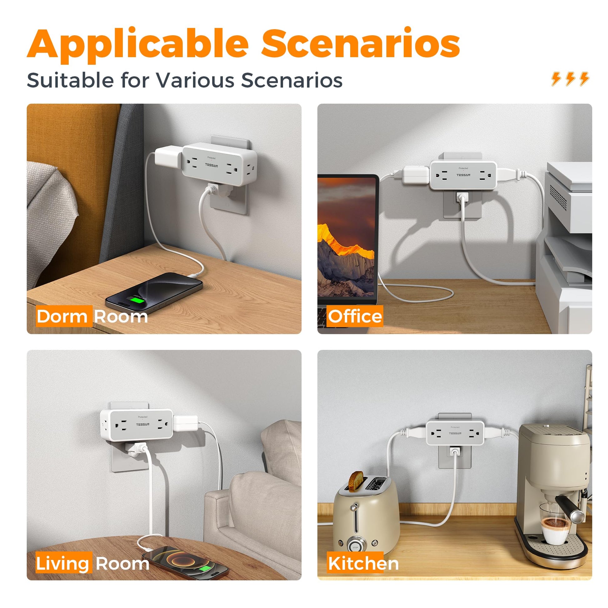 - 2100J Surge Protector Outlet: The outlet splitter protects your devices, such as computers and other electrical appliances, from power surges and spikes, providing a secure and dependable charging environment