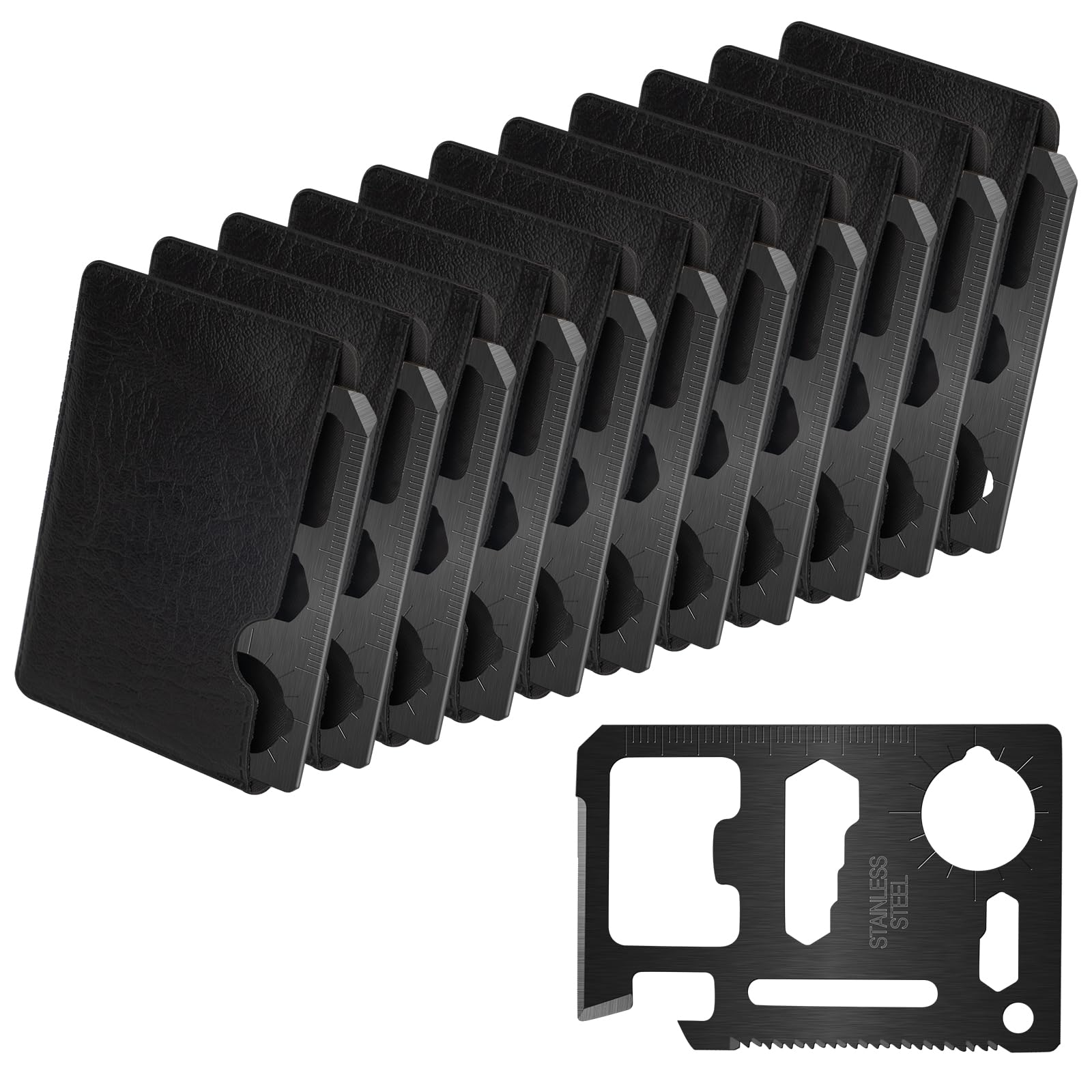 Survival Credit Card Multitool, 11 in 1 Beer Opener Survival Card Tool,Wallet Multitools Card Perfect for Fathers Men Gadgets Stocking Stuffers for Men (12 PCS) (Black)