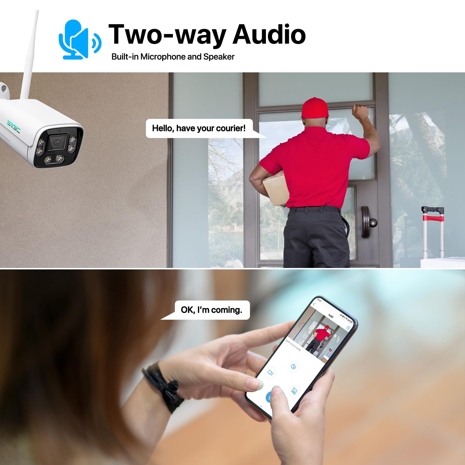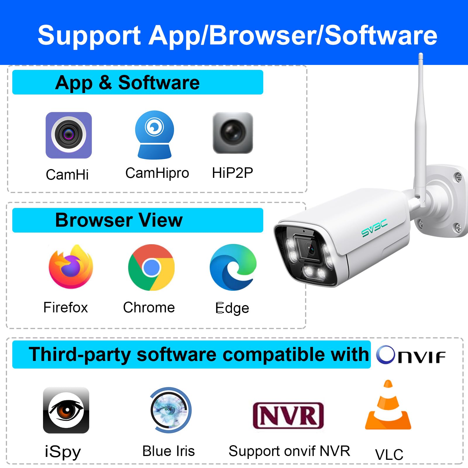 - 【Compatibility & Audio】: SV3C recommend you to view and setup the 4K IP camera on CamHi CamHipro app and HiP2P PC Client, less issue! Load and view the WiFi camera locally on browsers, Edge, Safari, Google Chrome, Firefox, without download any software! 8MP IP camera supports ONVIF, works with Blue Iris, iSpy, VLC and some ONVIF compatible NVR, but not fully compatible! WiFi Security camera has built-in Noise reduction Microphone and speaker, support two-way audio!