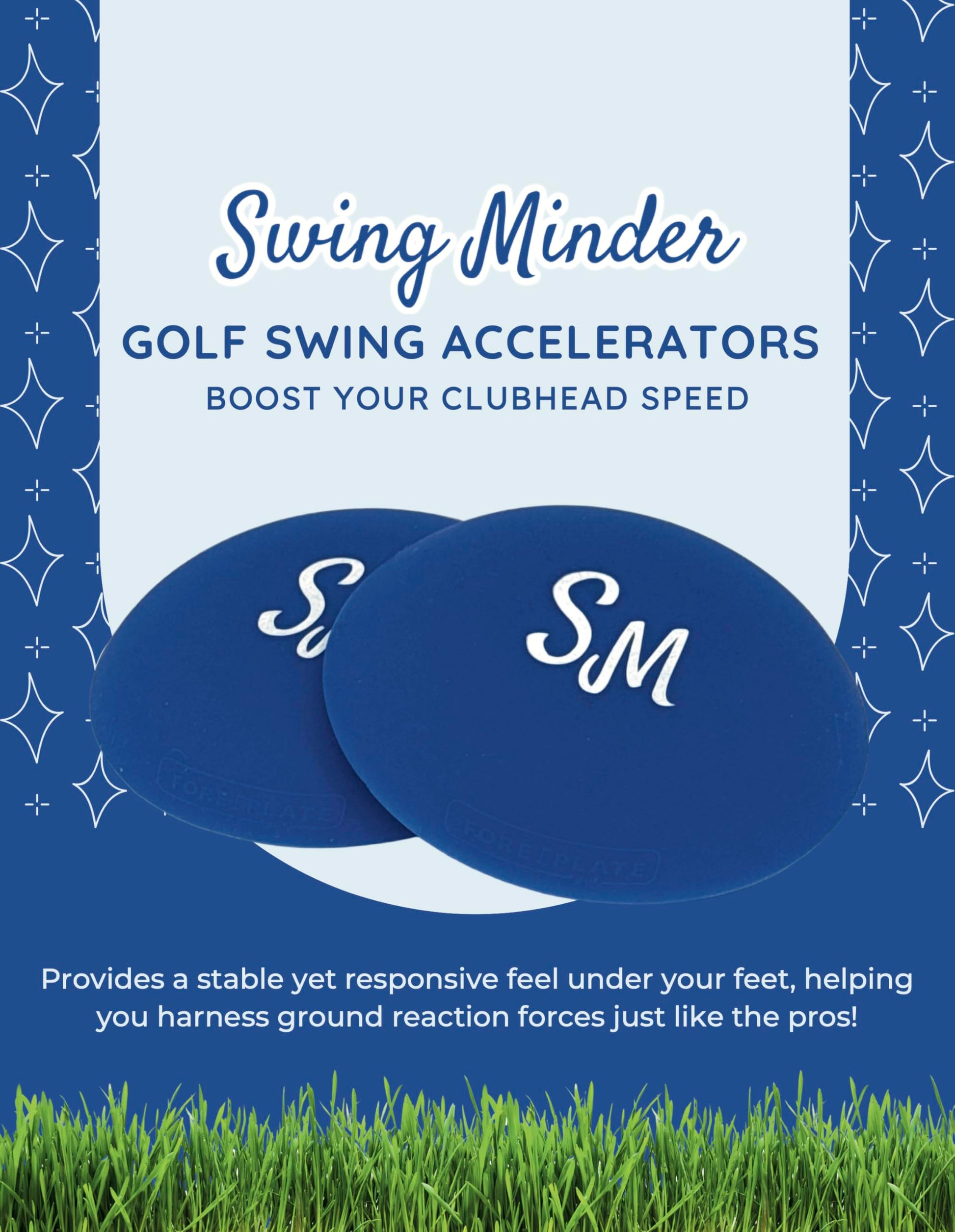 Details: "Unlock effortless power with the Swing Minder Golf Swing Accelerators — a breakthrough golf training aid engineered to increase clubhead speed through superior ground engagement. Designed for golfers who want to maximize distance without sacrificing balance, this set of two silicone pads trains you to harness your body’s natural energy more efficiently. Unlike typical swing trainers that focus only on arm mechanics, the Swing Minder Accelerators help you master ground reaction forces—the hidden key to real power. Simply place the pads under your feet during practice to feel proper heel-toe pressure, balanced rotation, and centered weight transfer. The soft-gel silicone provides just enough give to reveal flaws instantly while guiding you toward a more athletic, stable stance. Used by top instructors and Tour professionals worldwide, this golf swing balance trainer builds muscle memory for smoother transitions, better tempo, and explosive impact through the ball. Whether you’re fighting slices, hooks, or inconsistent contact, you’ll develop the foundation for a more efficient, repeatable motion that adds effortless yards off the tee."