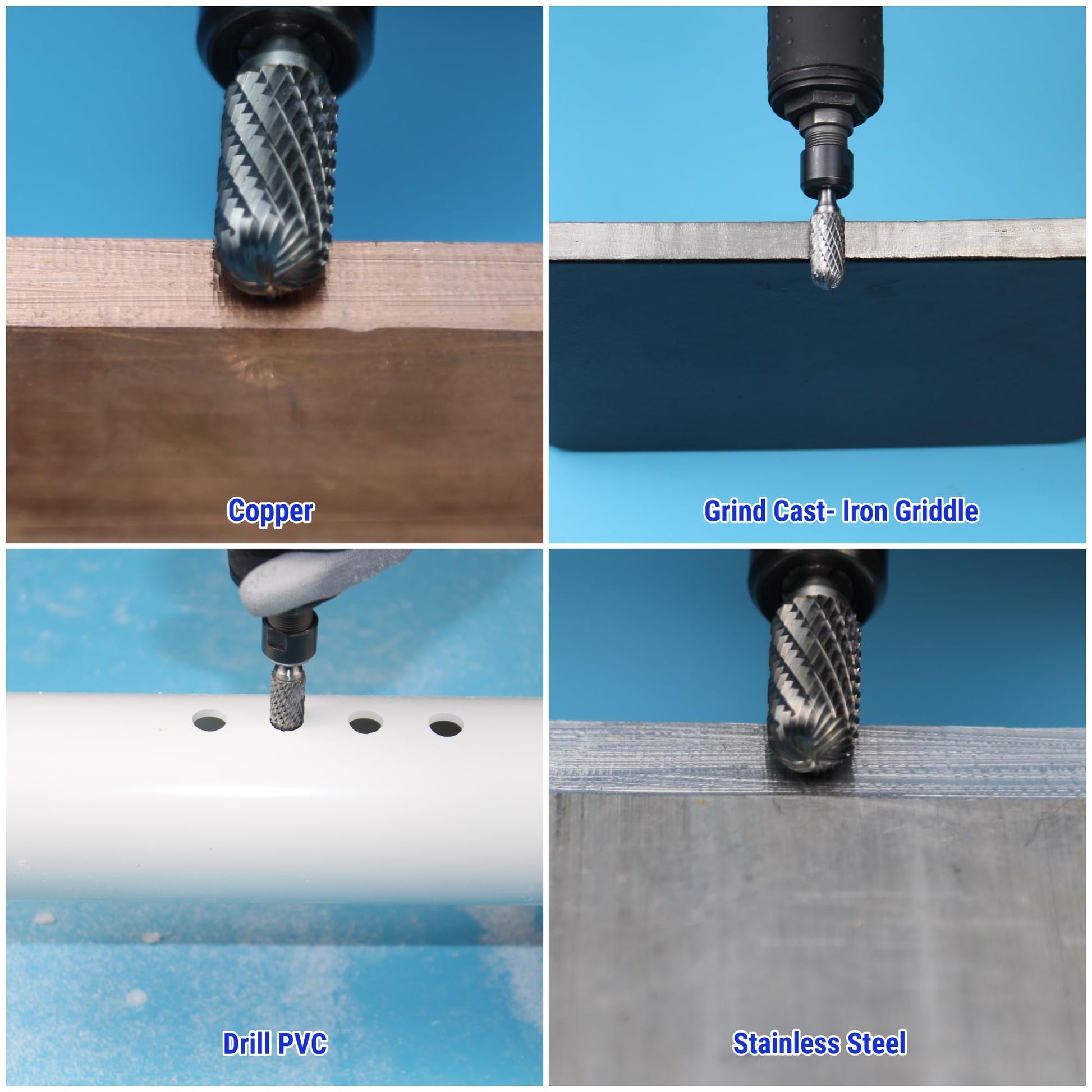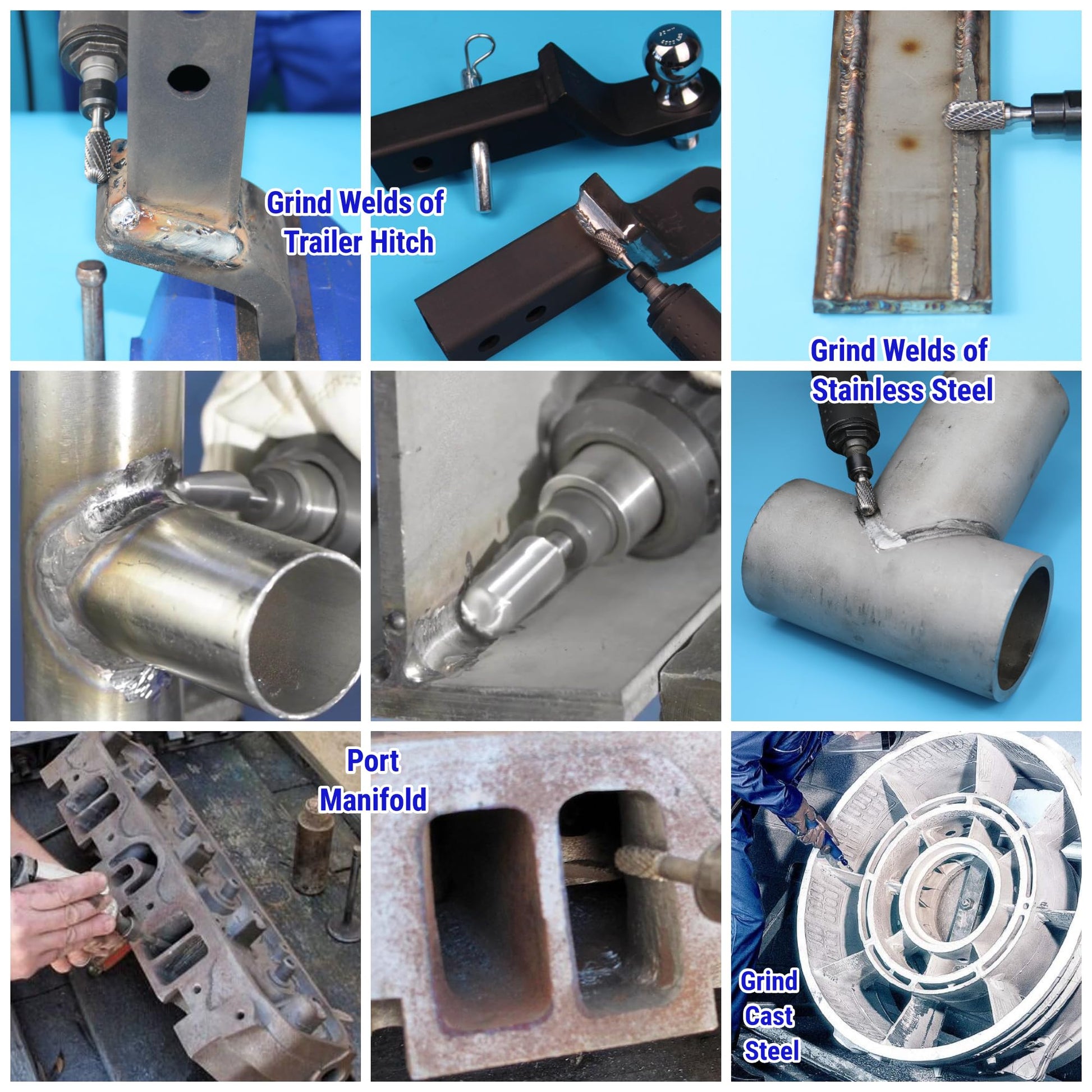 - Versatile: carving, chamfering, cleaning, contouring, cutting, deburring, elongating, engraving, grinding, meatalworking, milling, MRO, polishing, porting, sculpting, shaping, shaving, tooling, trimming, metal, wood, stone, steel, concrete, welds and plastic, etc.