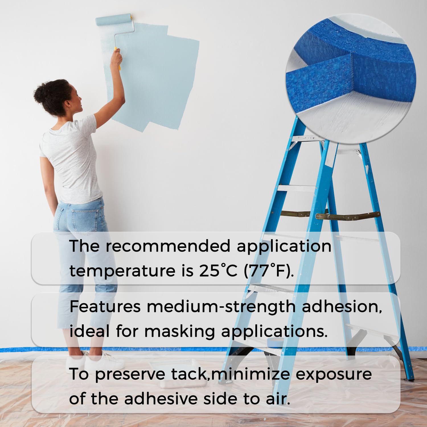 - Multi-Surface Adhesion: Our blue tape adheres securely to drywall, baseboards, glass, wood, metal, and other common surfaces. It works well on both smooth and slightly textured finishes for maximum versatility