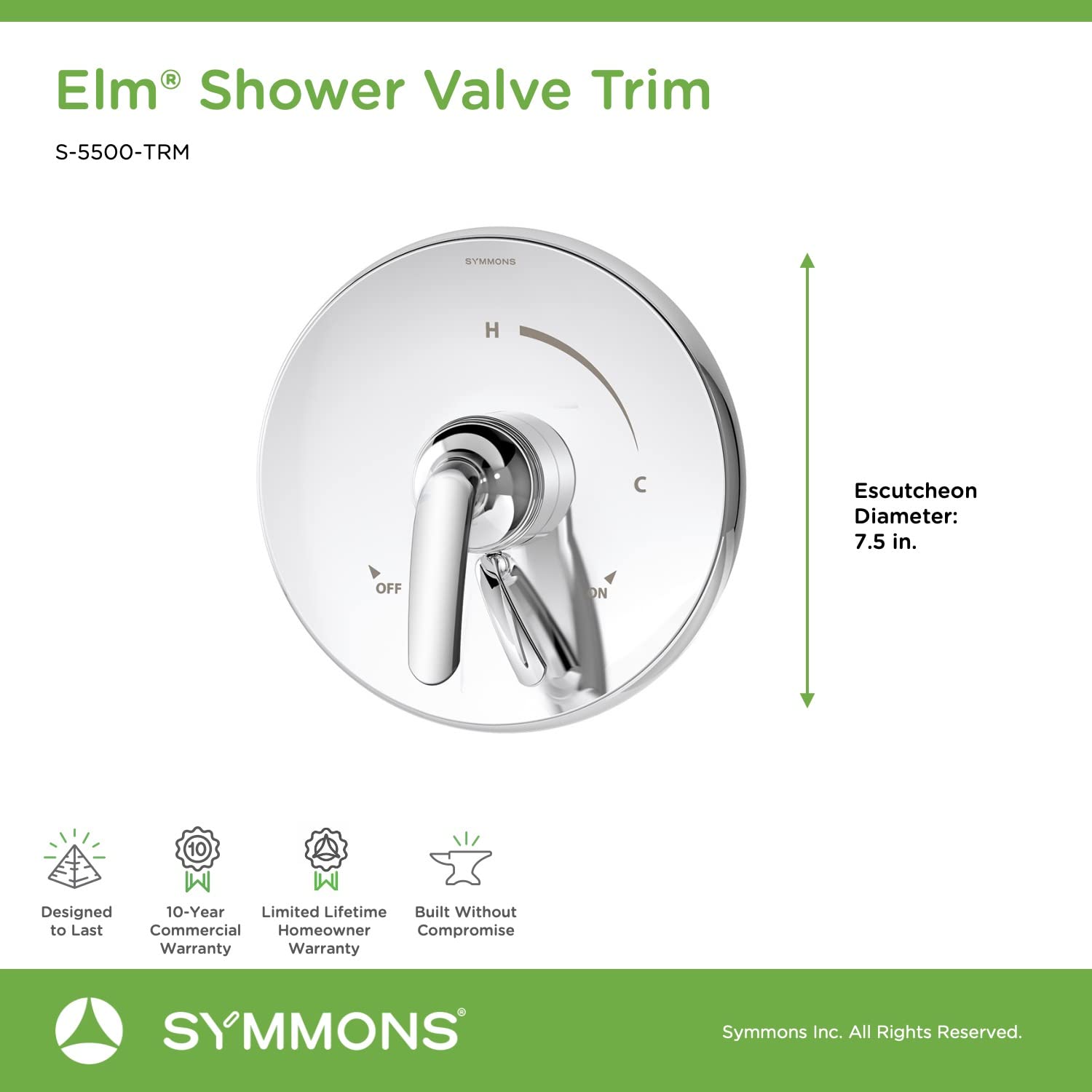 Symmons S-5500-TRM Elm Shower Valve Trim in Polished Chrome (Valve Not Included)