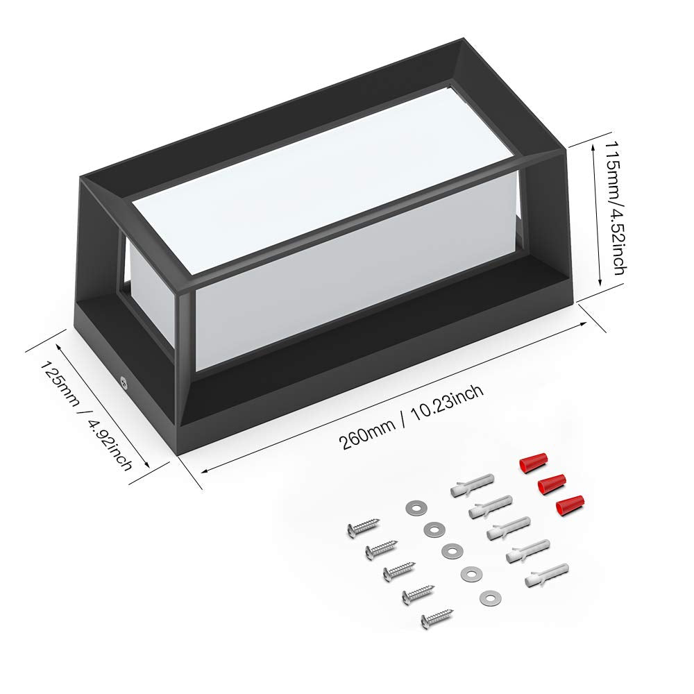 Details: Material: Aluminum+PC Product color: Black Color temperature: 5000K Input Voltage: 100-277V AC Output Wattage: 24W Total luminous flux (Lumens): 2380 lm Waterproof rating: IP65 Product size: 26*12.5*12.5cm / 10.24*4.9*4.5in Package weight: 1.2kg / 2.6lb Power Source: LED Hard-wired Wall Mounted