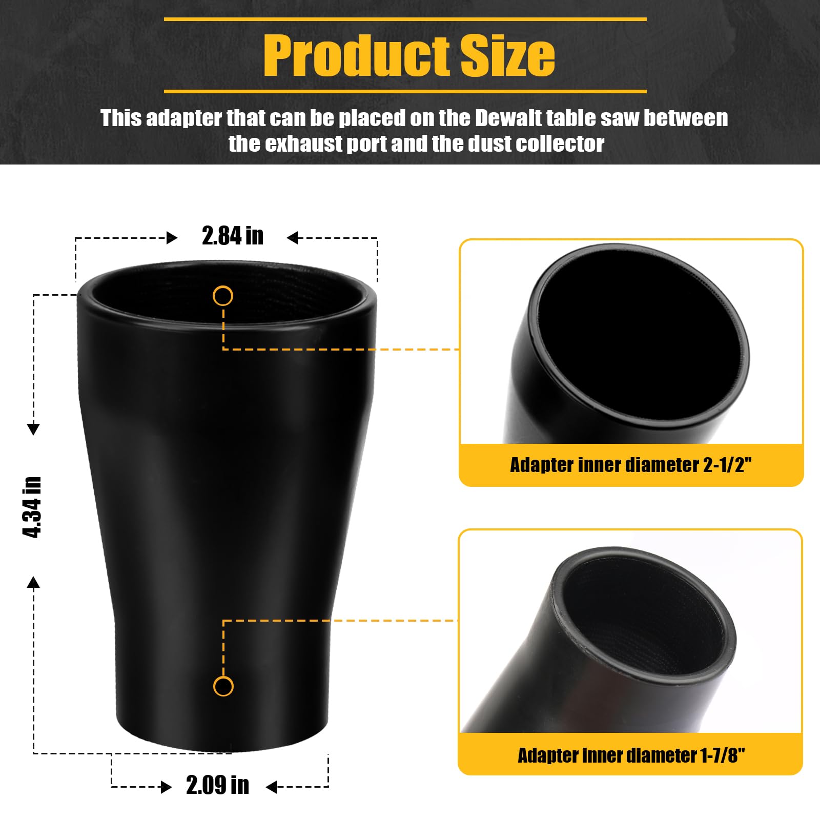 Table Saw Vacuum Adapter Replacement For Dewalt DWE7491RS Dust Collection Shop Vac Attachment Construction - Suitable for connecting 2 1/2 "table saw outlet to 1 7/8" Shop Vac Hose, Fit Most Table Saw