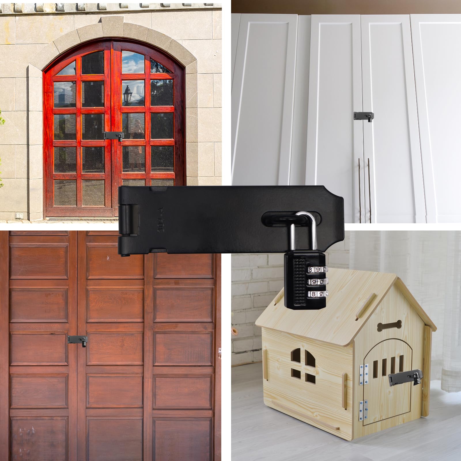 - [Premium Material]This padlock hasp is made of high-quality 304 stainless steel, which is durable, rust-proof and corrosion-proof.Comprehensive polishing and wire drawing make the products more concise and beautiful, and perfectly match with various modern homes.