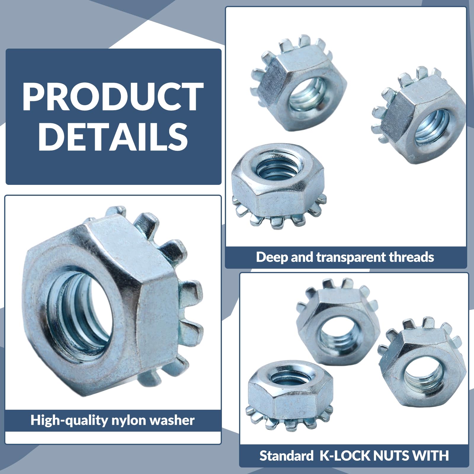 - Versatile Functionality: featuring a free rotating external tooth washer, this 1/4"-20 lock nut offers wide ranging applicability and becomes an essential element for various assembly tasks, the teeth on the lock washer can help lock the nut tightly; Use it for machine parts, furniture assembly, repairing automobiles, or many other situations requiring secure, tight connections; Its versatility will surely surprise you