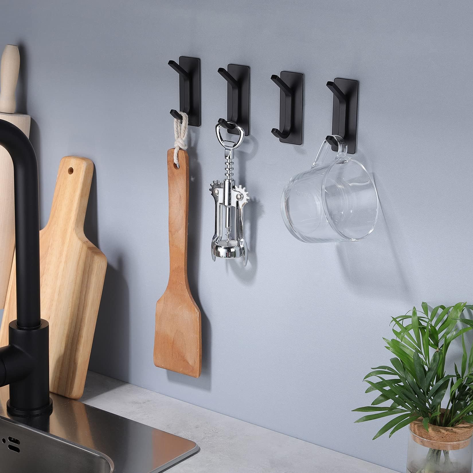 Taozun 4-Pack Black Stainless Steel Adhesive Hooks - Upgraded Strong Self-Adhesive Towel Hangers for Bathroom, Kitchen, and Bedroom