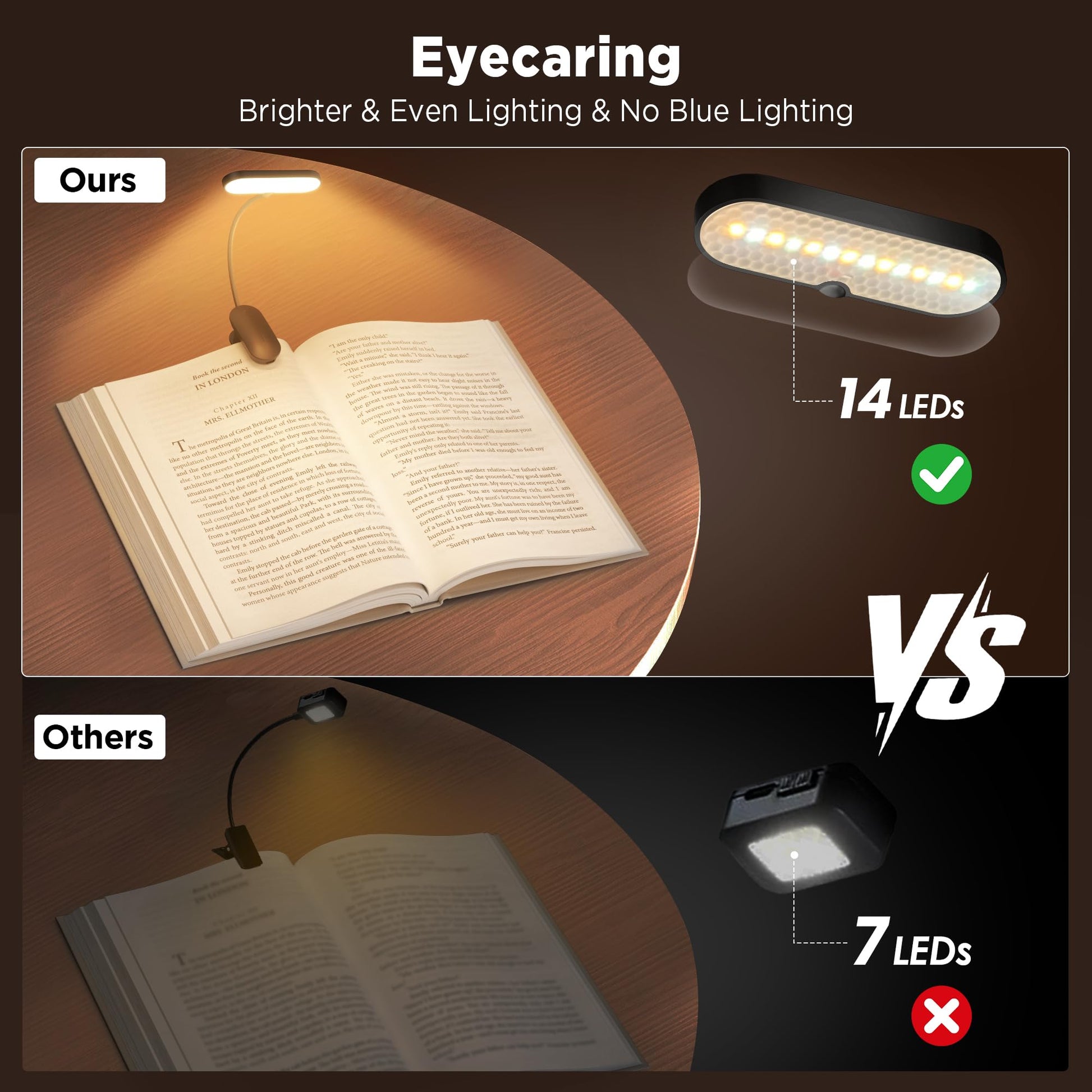 TATAANTY Book Light for Reading at Night- Eye Caring 3 Color Modes&Stepless Dimming LED Book Reading Light,Rechargeable 70 Hrs Lasting Runtime Lightweight Clip-on Book Light for Book Lovers,Deep Black
