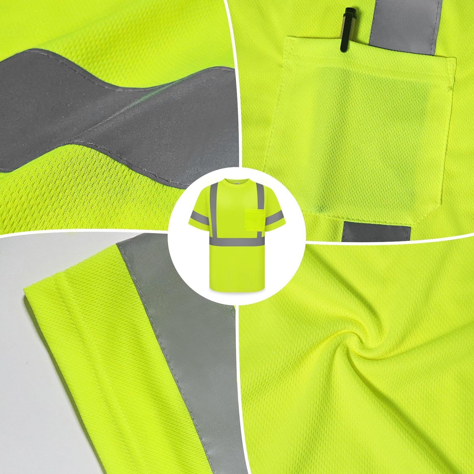 - 👀 High Visibility 👀 The high visibility shirts for men features 2 vertical and 1 horizontal 2" wide reflective strips on the front, back and shoulders, 2 circle reflective strips on the sleeves for maximum reflectivity and visibility, ensuring your 360 visibility in all weather and lightning conditions to keep you safe while performing your tasks.