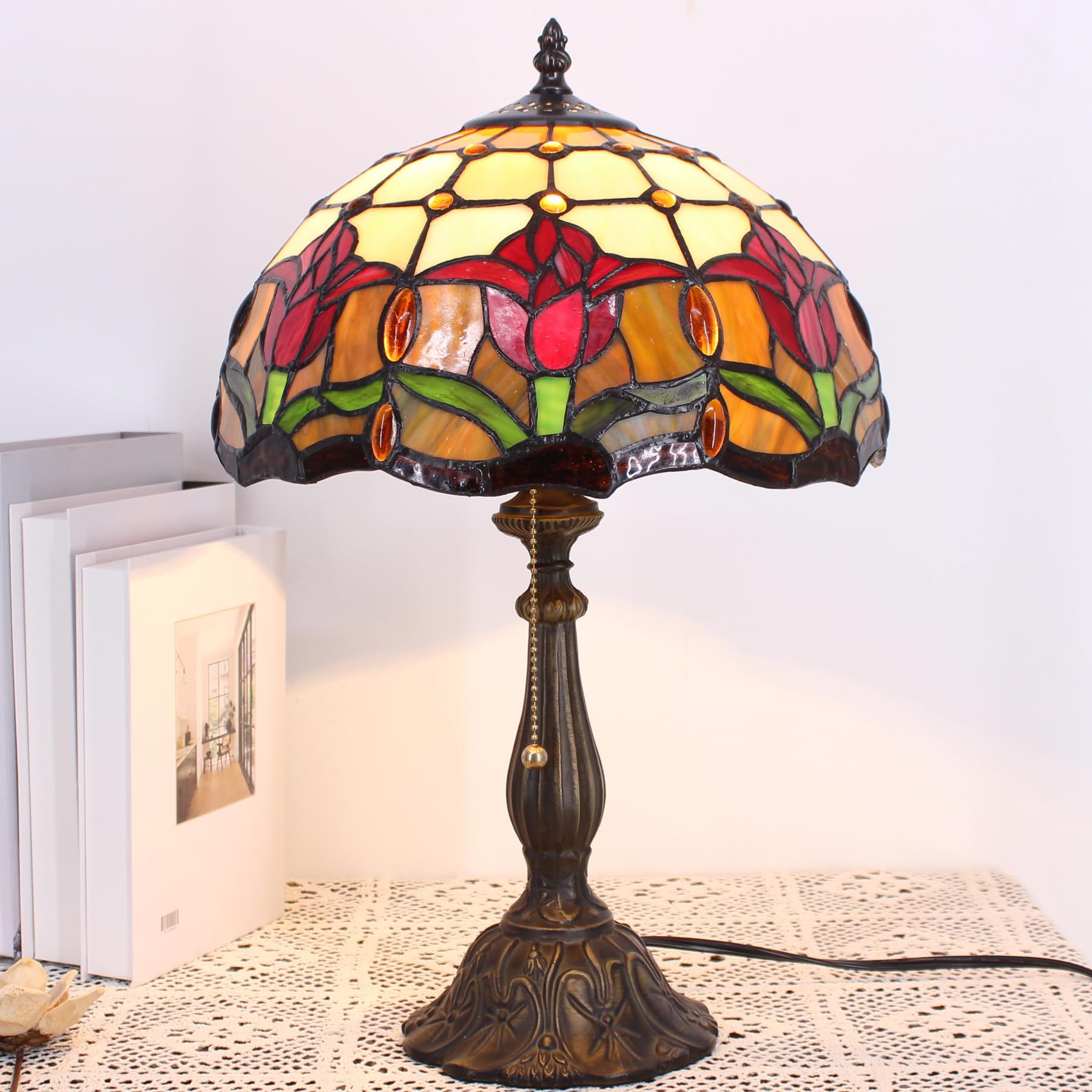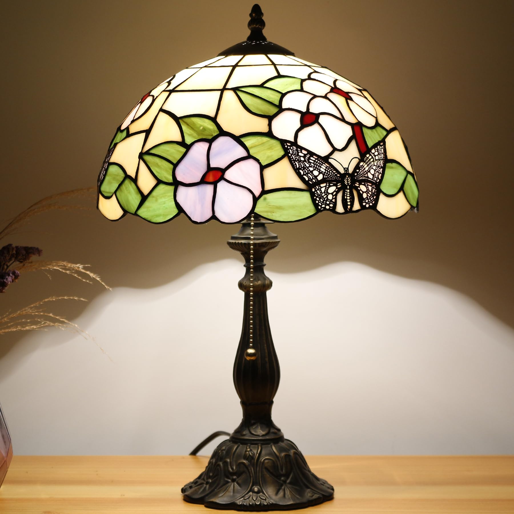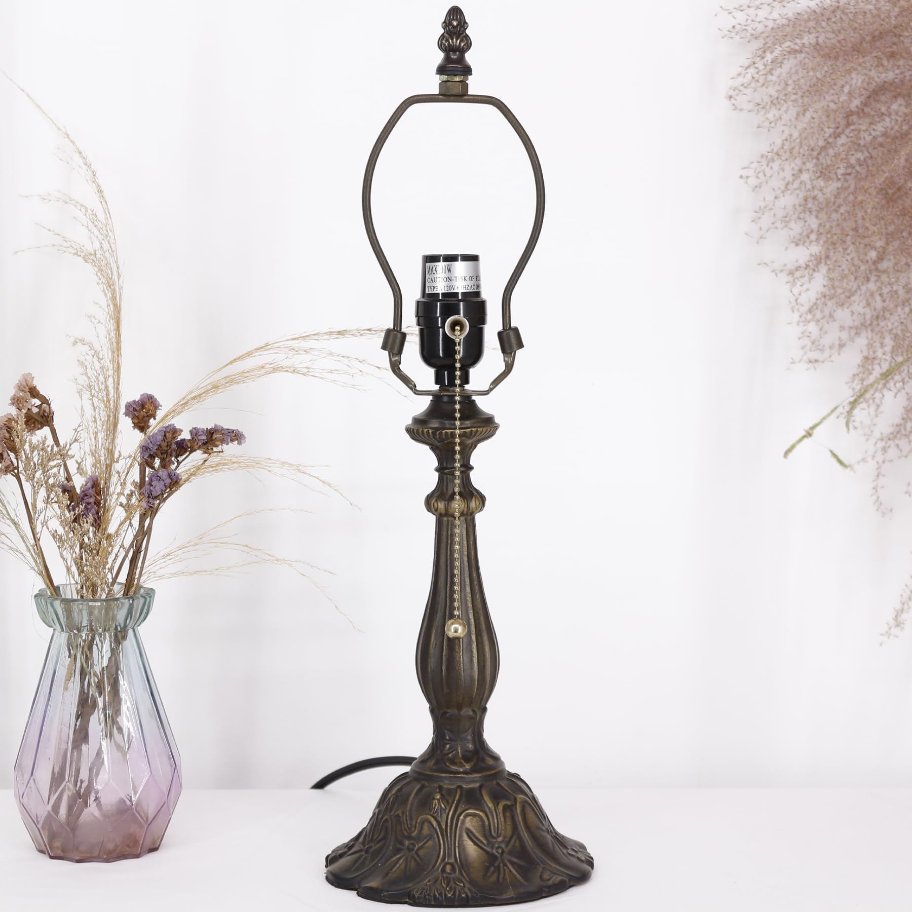 TCODTPOL Table Lamp Base Replacement Only, Wide 6 Height 18 Inch, Fit for 8, 10, 12 Inch Tiffany Style Stained Glass Lampshade, Dark Bronze Finish,Resin, Push Switch On Cord