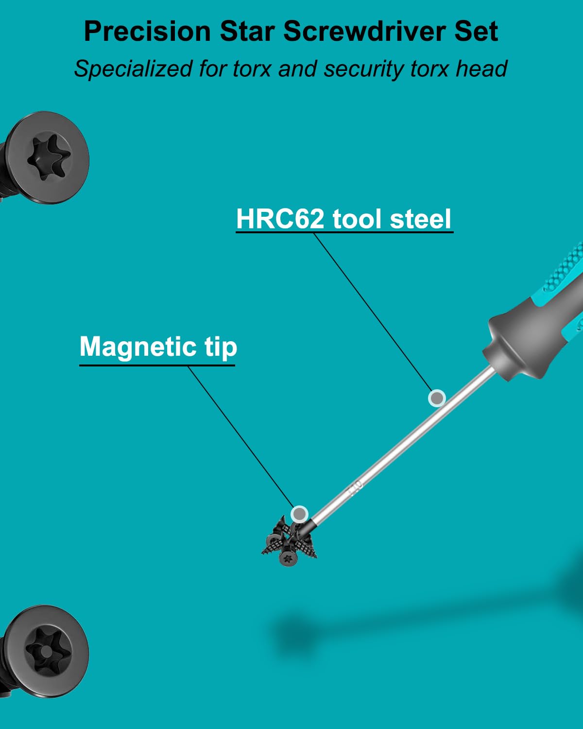 - 【Magnetic Tip】We optimized the magnetism of small torx screwdriver set tip, effectively improving the ability of the star screwdriver head to remain magnetic for a long period of time.