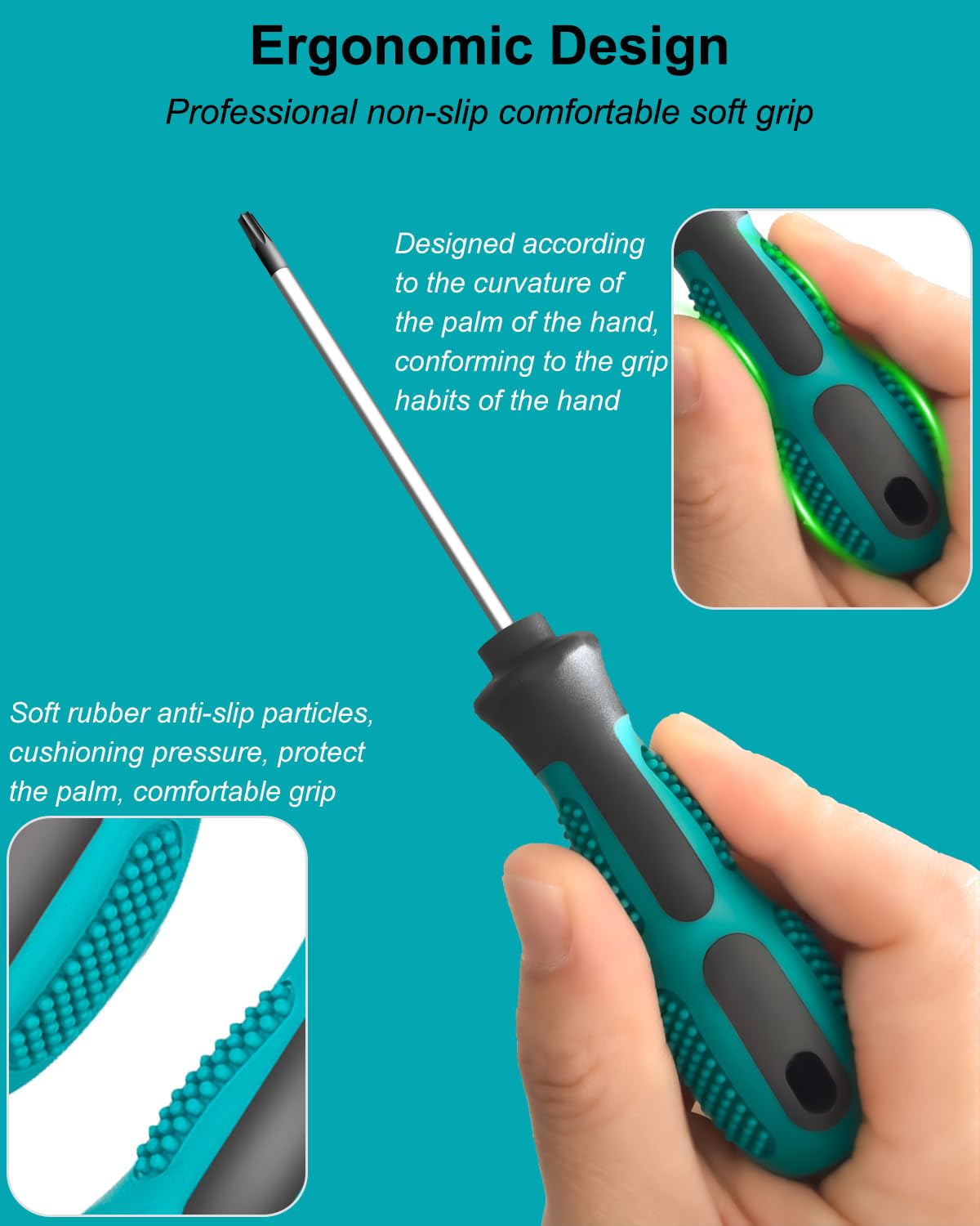 - 【Non-Slip Grip】Mini torx screwdriver set handle is made of PPC material with non-slip concave-convex granular design, which improves grip strength and comfort and reduces hand fatigue during long working hours.