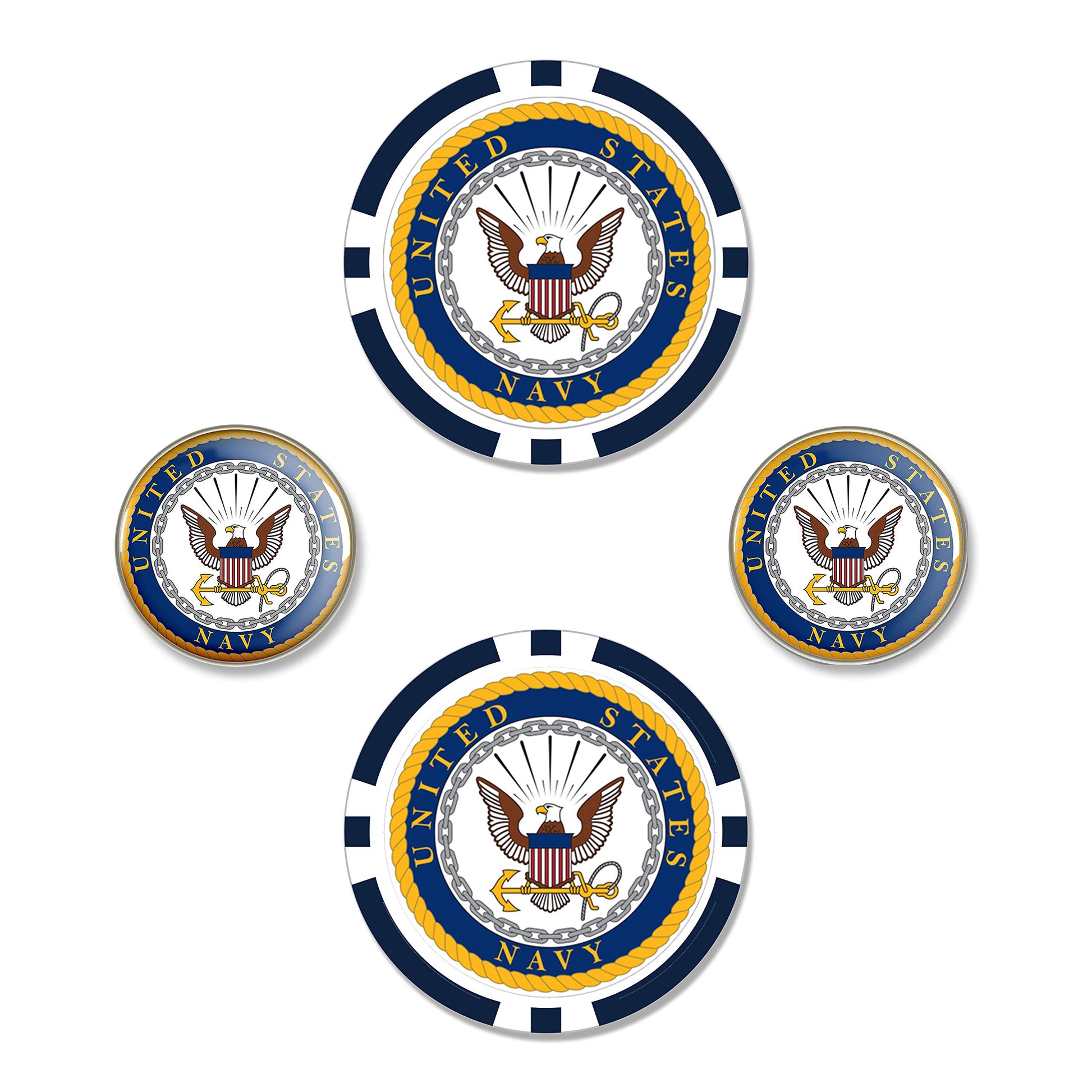Details: The ball marker set includes two oversized 40mm ball markers and two 25mm iron-stamped ball markers. This set is packaged in a hangable clamshell.