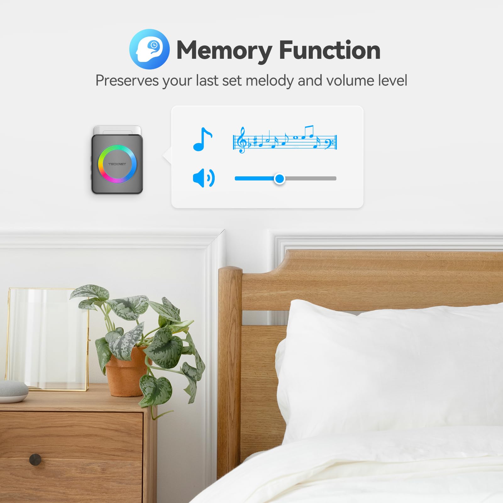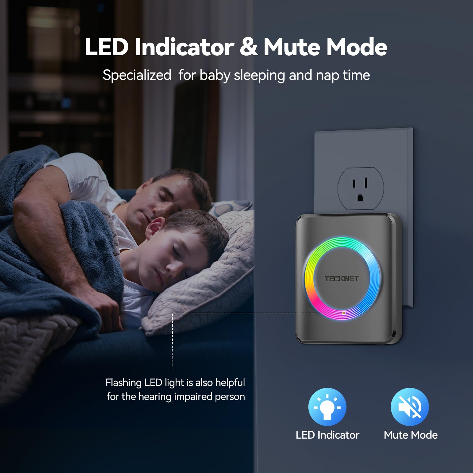 TECKNET Wireless Doorbells for Home, IP65 Waterproof 1,970Ft 120dB Door Bell Ringer Wireless for Classroom with 60 Chimes & 5 Volume Levels, RGB Flash