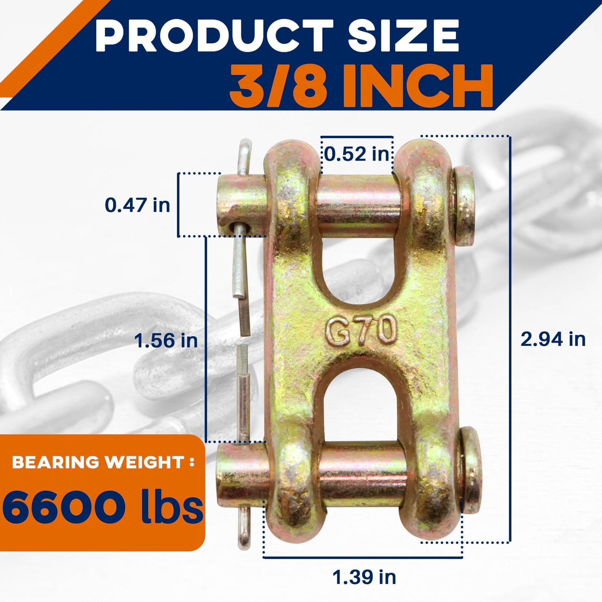 - Enhance the strength of your chain with 3/8 inch twin clevis link, offering a working load capacity of 6600 lbs per link
