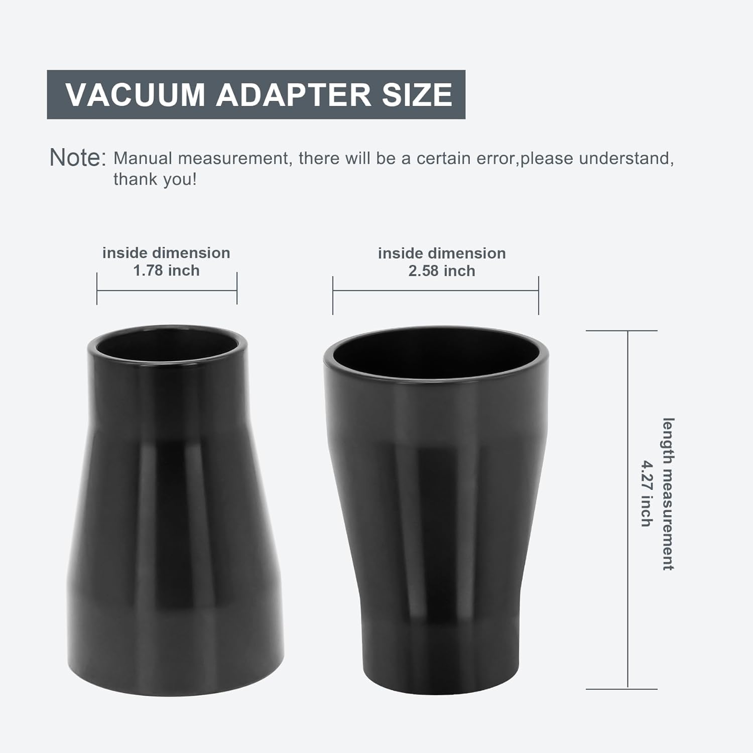 - Reduces from the 2 1/2" table saw outlet down to 1 7/8" vacuum hose