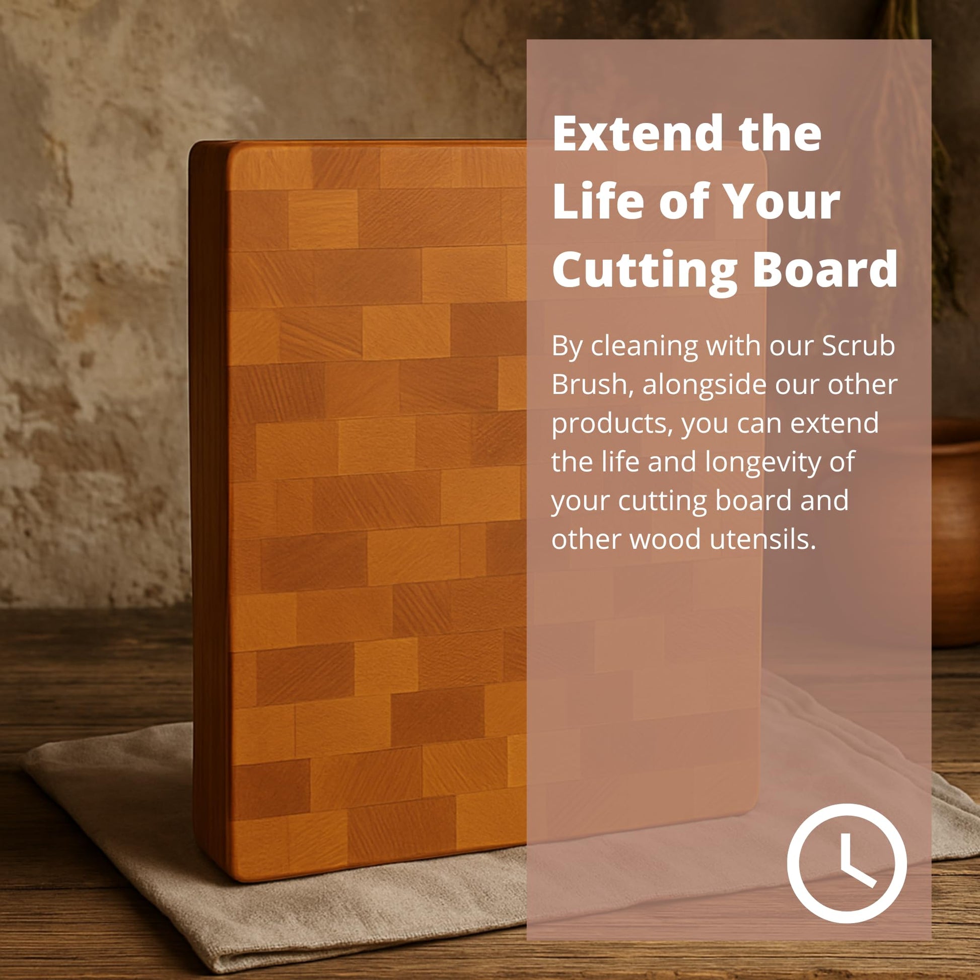 - USE ON CUTTING BOARDS, BUTCHER BLOCKS, COUNTERTOPS & MORE: Primarily designed for cutting boards, this scrub brush is also versatile for various kitchen surfaces such as wood countertops, butcher blocks, wooden utensils, cast iron, and more.