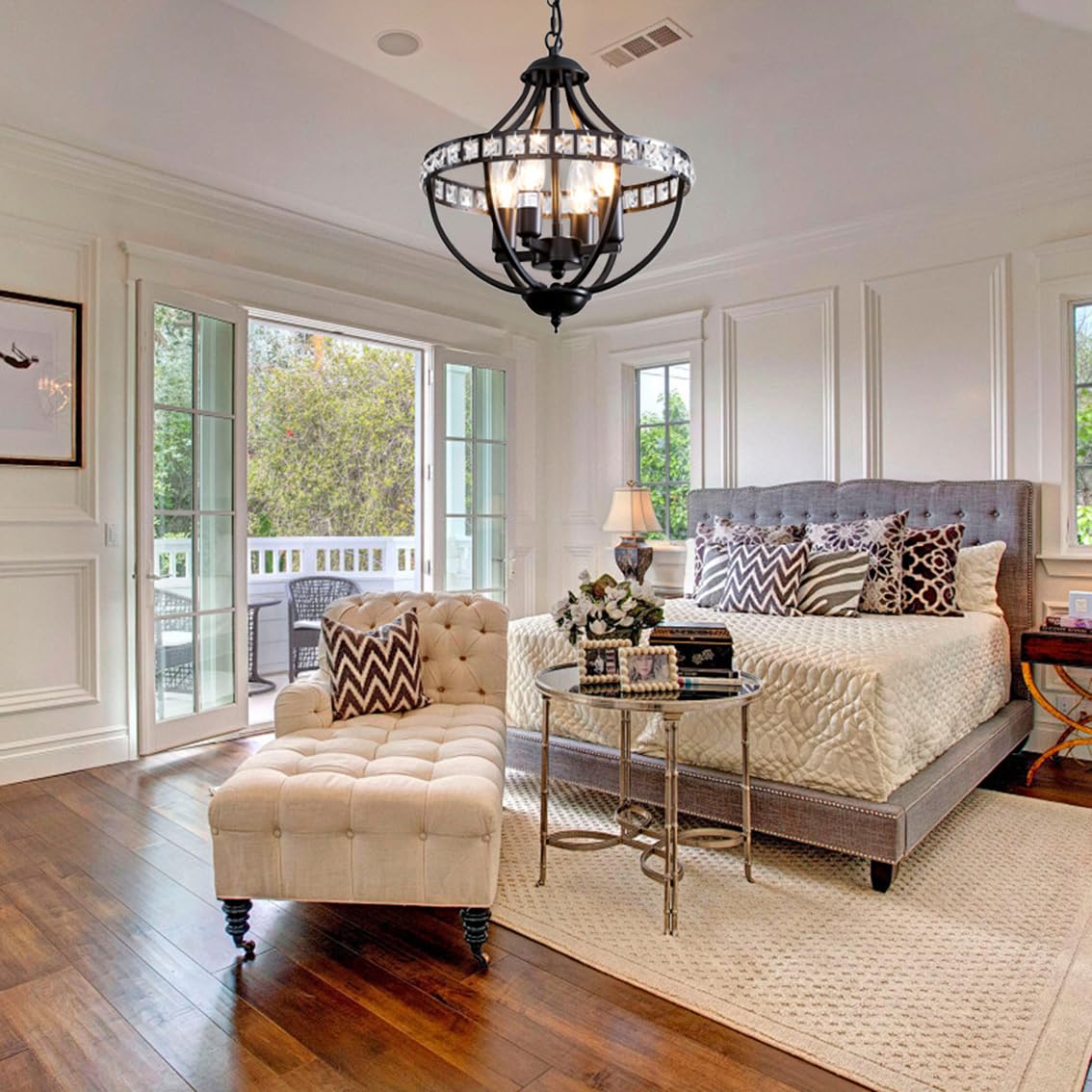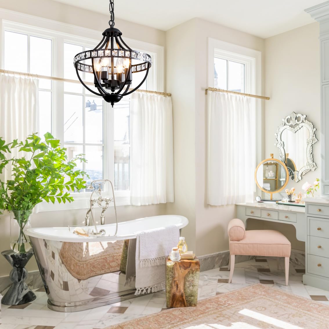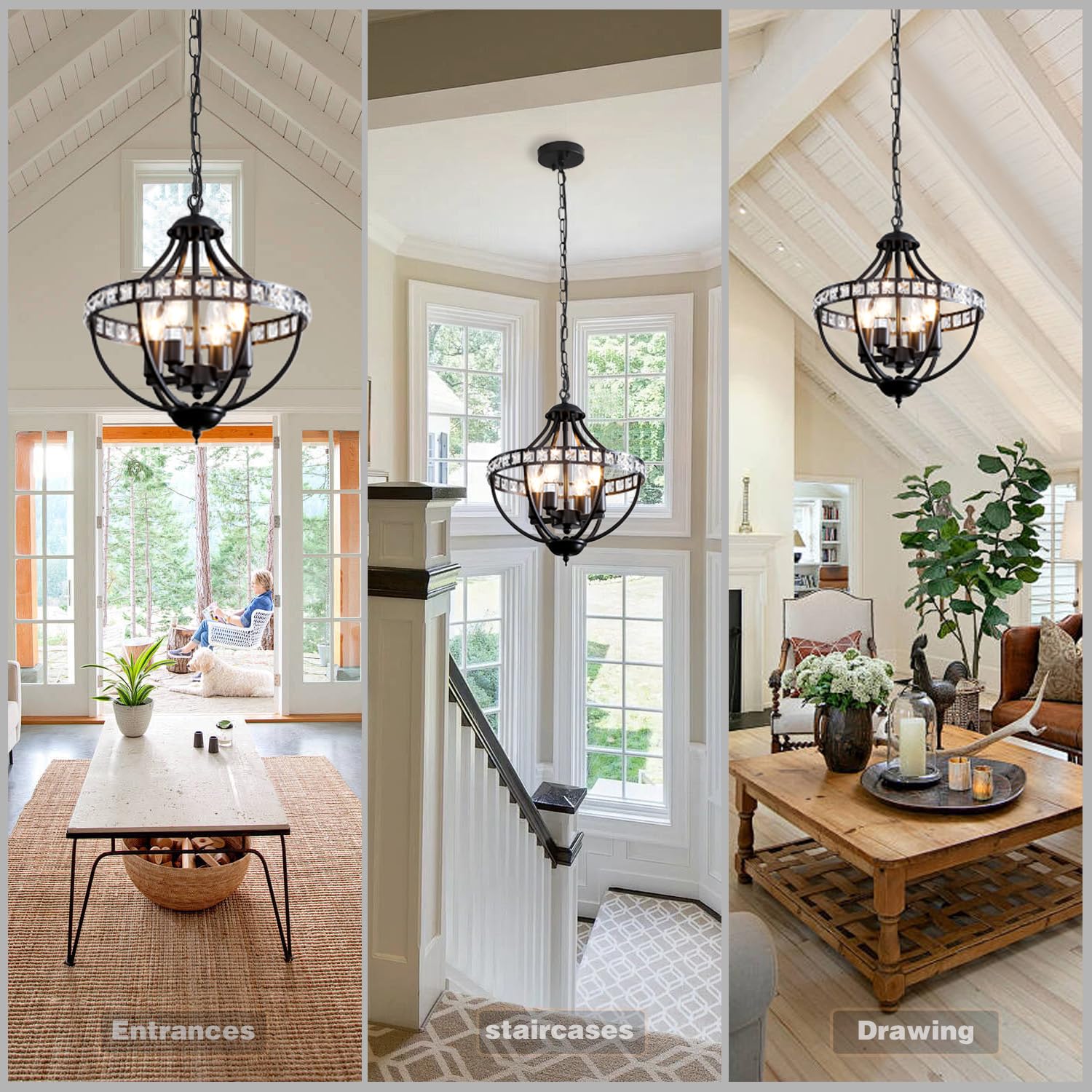 Threebro Crystal Chandeliers,Farmhouse Ceiling Chandelier Rustic Vintage Black Pendant Hanging Lighting for Dining Room Living Room Entryway Kitchen Island Bedroom Foyer Lighting(4-Light)