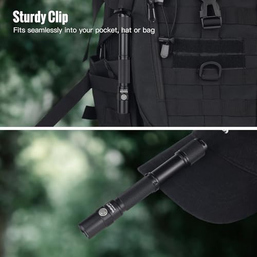 - Multi-Functional LED Flashlight: This led flashlight measures 6.1*0.87 inches, weighs only 1.9 ounces (without battery), can be placed in a backpack or pocket. It is equipped with two-way clips that can be clipped to a hat/pocket for easy night maintenance work and free hands, is the perfect choice for EDC, outdoor, emergency, maintenance, mountain climbing, camping, hiking, night walking, fishing, etc.