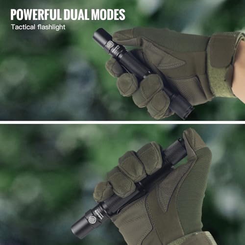 - Strong and Sturdy Tactical Flashlight: This EDC tactical flashlight body is made of aircraft-grade aluminum alloy, IPX-8 waterproof rating and 1m impact resistance. Perfect LED flashlight for outdoor adventures or emergency situations.