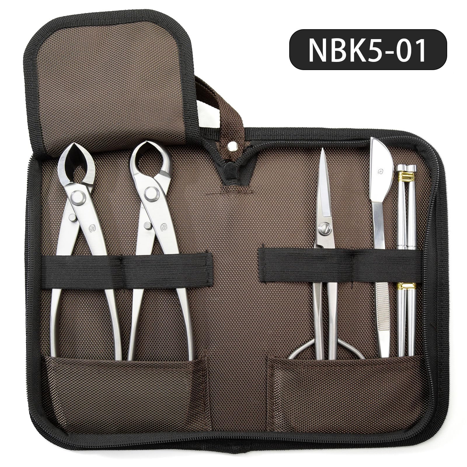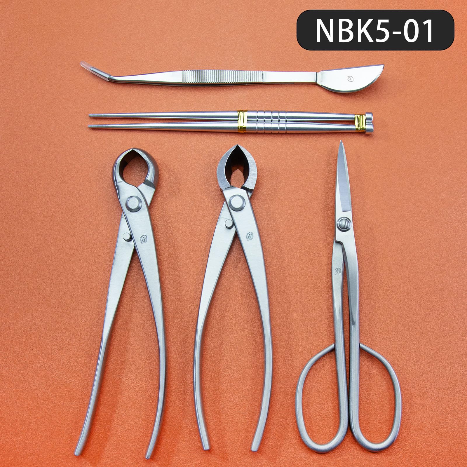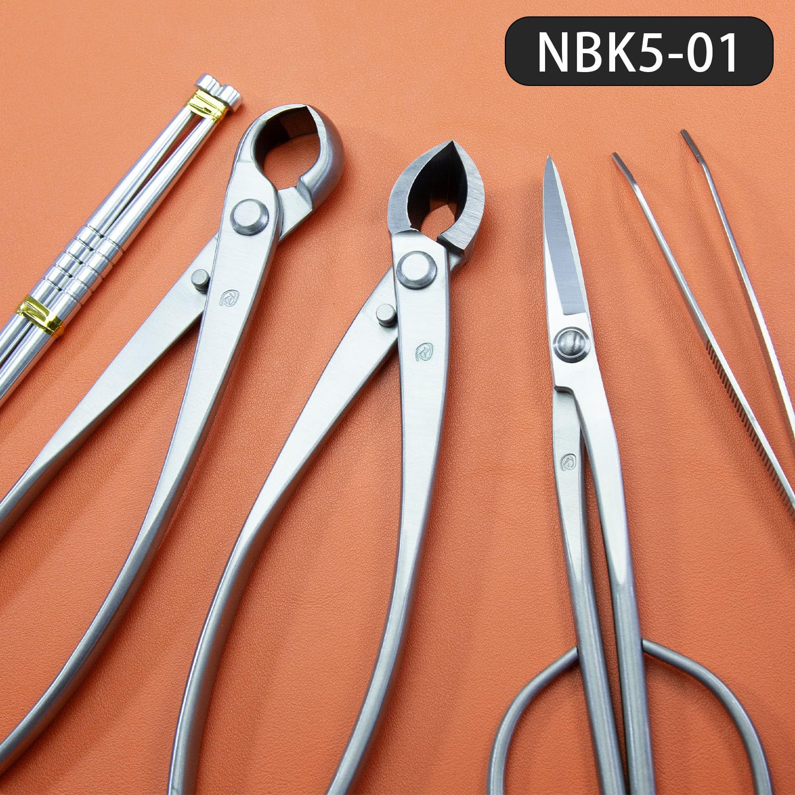 TianBonsai Bonsai Tools 5-Piece Alloy Steel Bonsai tool Kit In Cluding 210mm Long Handle Scissors / 205mm Branch Cutter / 205mm Knob Cutter / 200mm Straight Root Hook/Tweezers (NBK5-01)