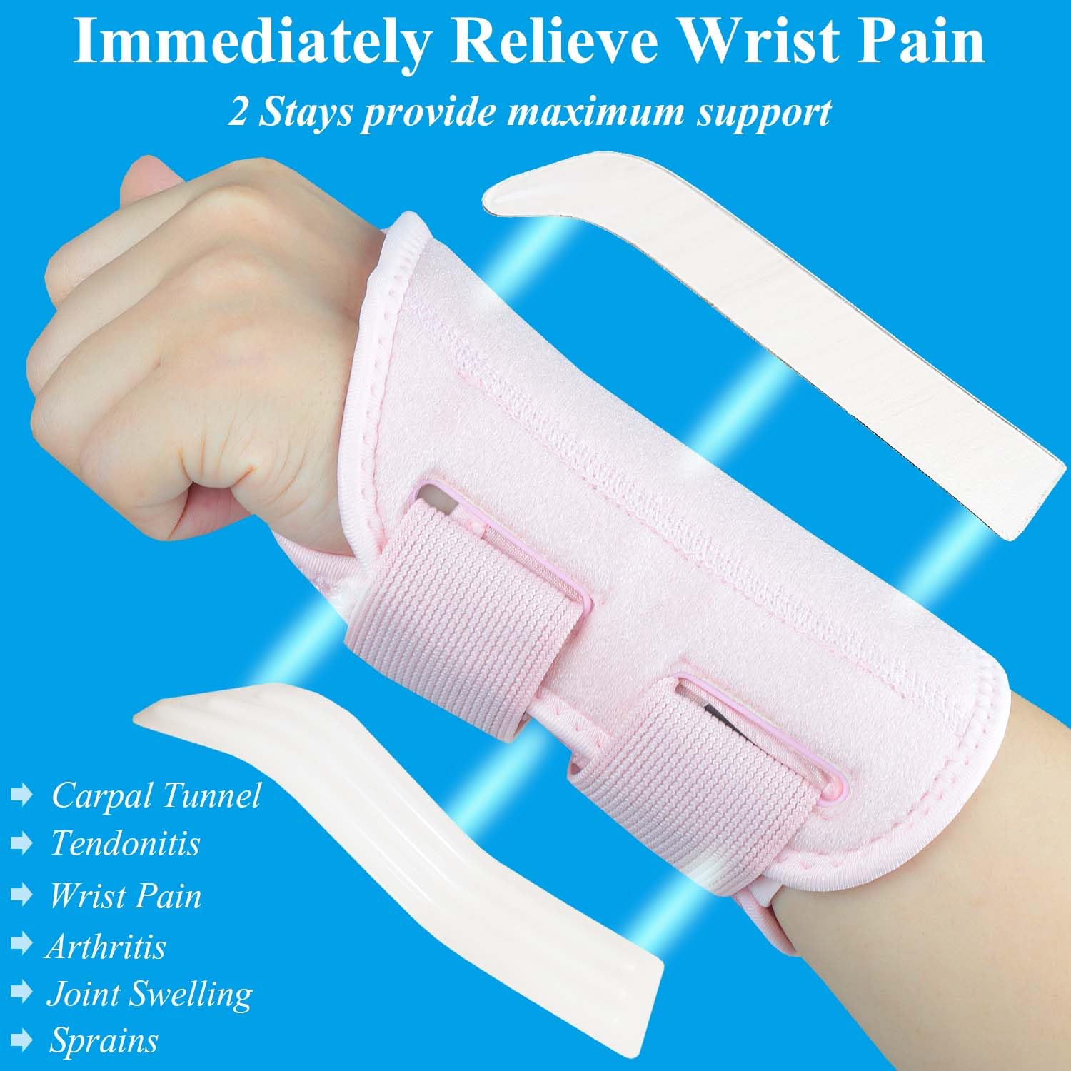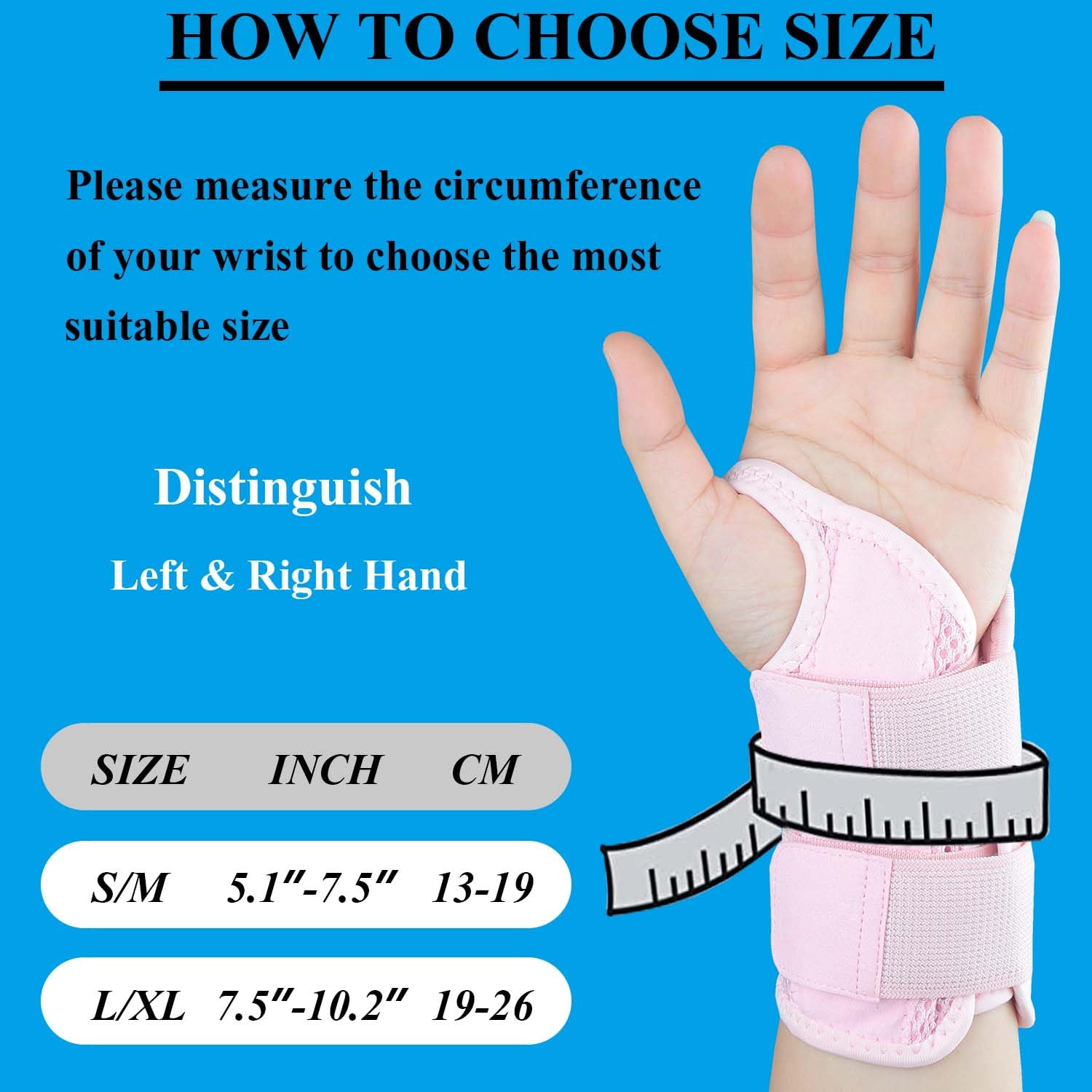 Tianhengyi Carpal Tunnel Wrist Brace, Adjustable Wrist Support Brace, Night Wrist Sleep Supports Splints Arm Stabilizer (Left Hand, L/XL, Pink)