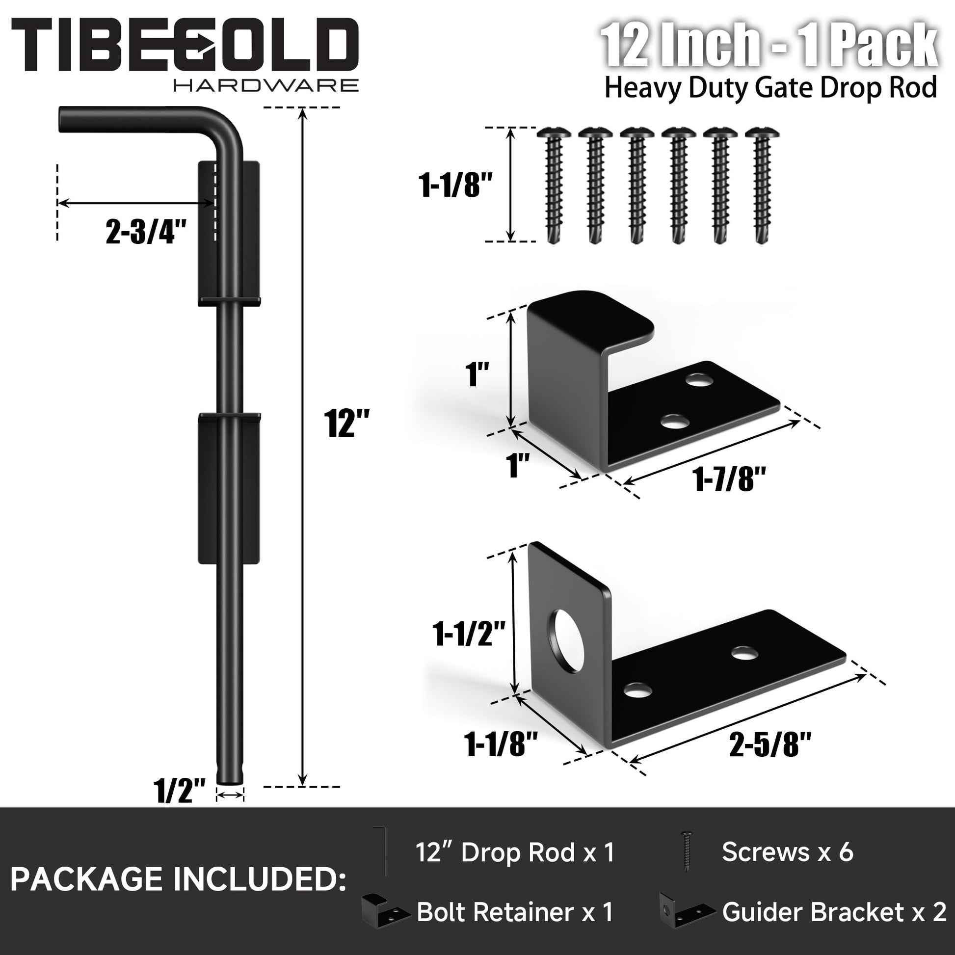 - 12 Inch Heavy Duty Cane Bolt: TIBEGOLD drop cane bolt is crafted from durable heavy-duty solid wrought iron, making it tough and resistant to deformation. The black powder coat enhances its durability, delivering superior resistance to both rust and corrosion. Engineered for sustained outdoor deployment, it offers unwavering support and stability for your outdoor gates, ensuring their reliable function over time.