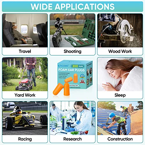 - [EFFECTIVE NOISE REDUCTION] TICONN Foam ear plugs are designed to provide effective noise reduction. They can reduce noise levels by up to 32 decibels, making them ideal for use in noisy environments such as construction sites, traveling, and other industrial workplaces which require hearing protection.