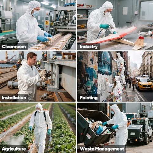 TICONN Hazmat Suit Disposable Coveralls, Full Body Protective Lab Coveralls, Breathable Paint Suit for Men Women