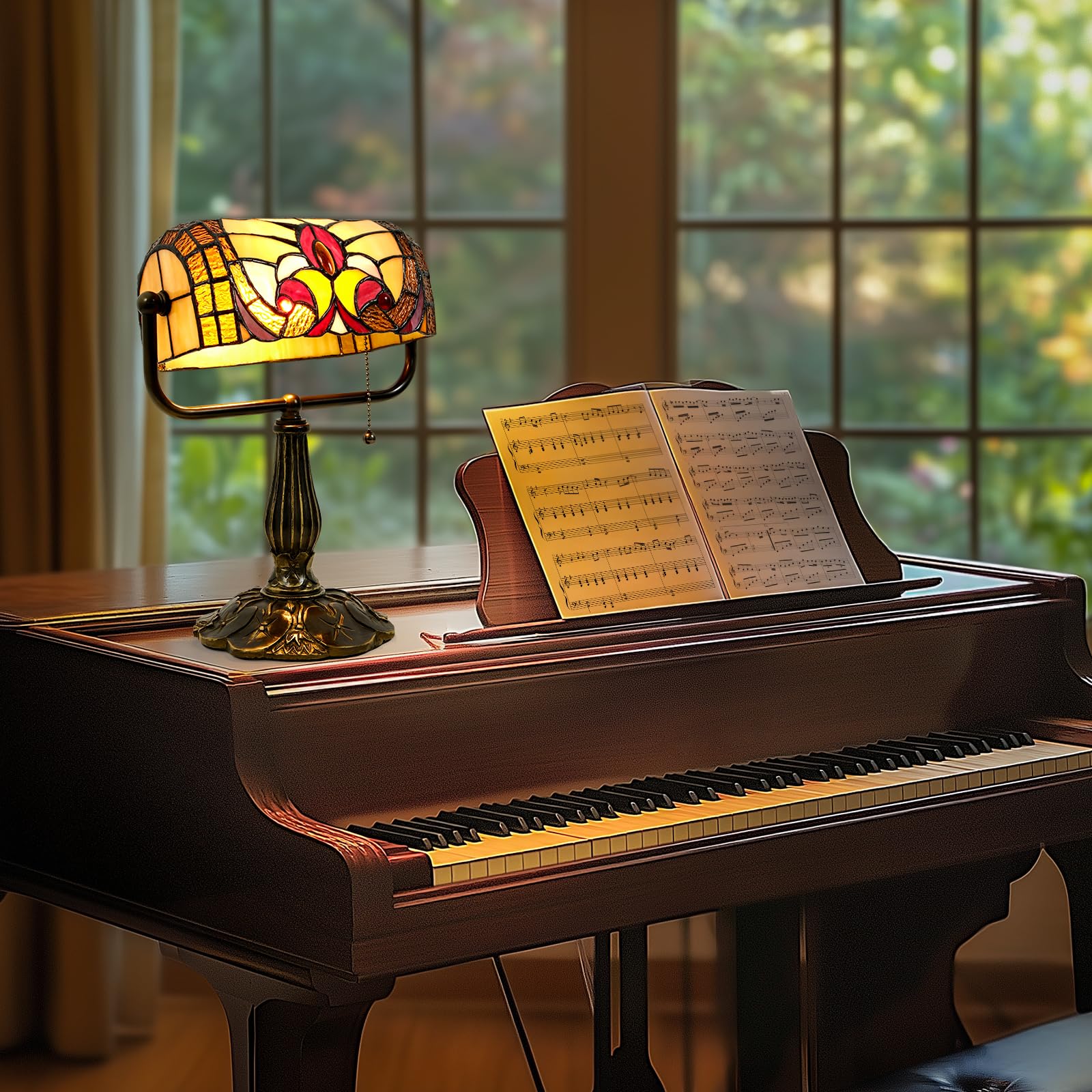 - Timeless Beauty & Durability - Upgrade your space with this exquisite bankers lamp, featuring a timeless Tiffany style lamp design crafted with beautiful stained glass accents. The stained glass lamp blends vintage charm with robust construction. Its Tiffany style table lamp design ensures enduring elegance, making it a perfect desk lamp for offices, pianos, or bedside tables