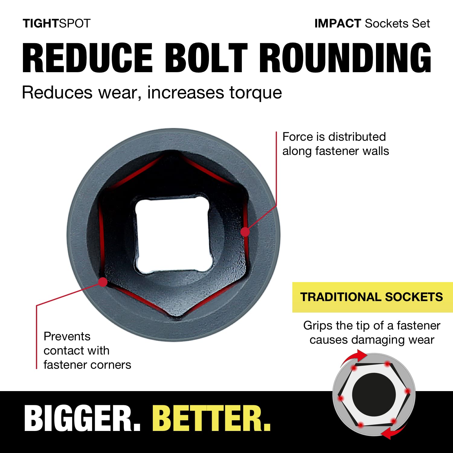 - [Radius Corner Design]: Sockets designed to apply more force and reduce rounding of bolts by grabbing fasteners by their sides, not tips.