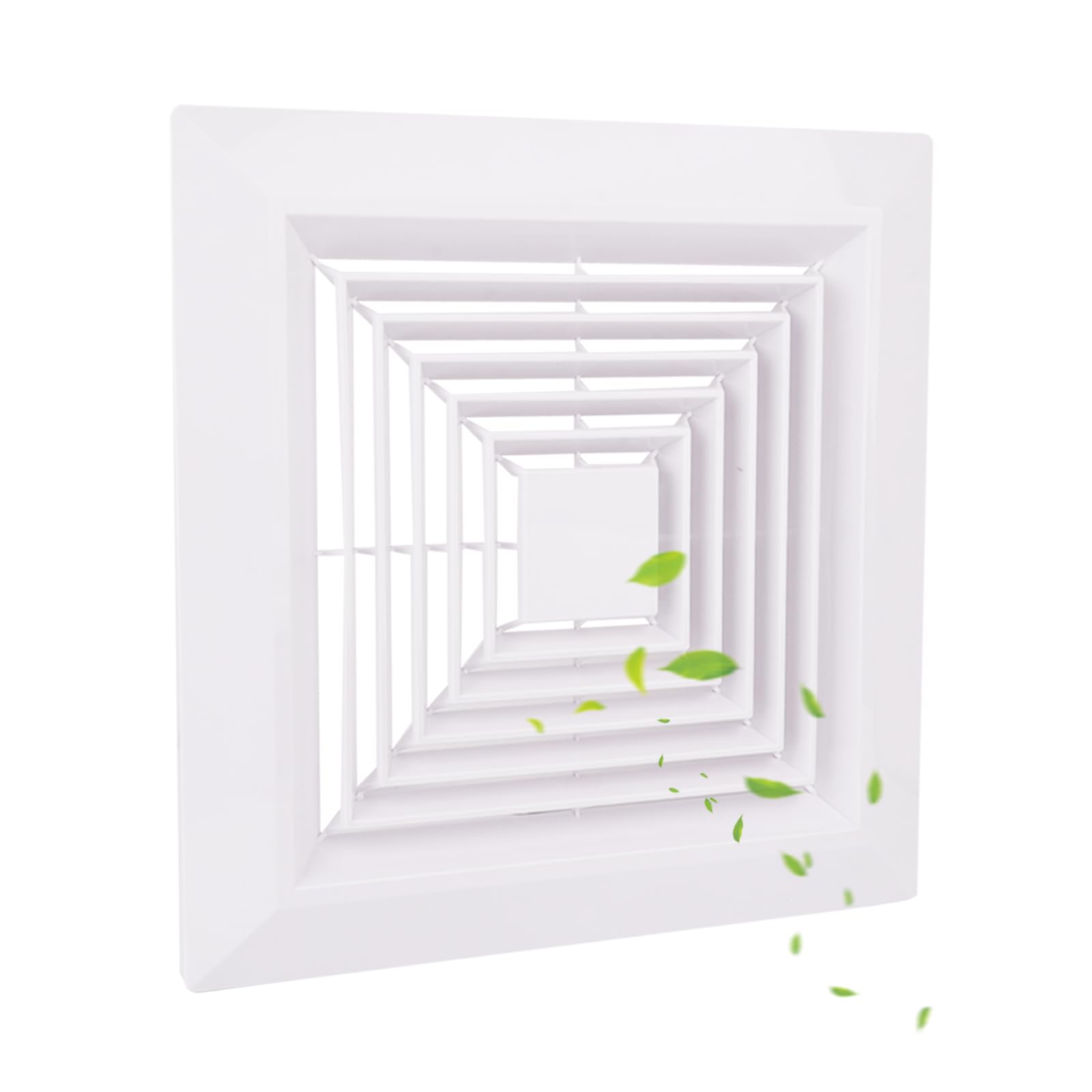 - (Ideal choice for home furnishings) : The exhaust fan cover is a classic white with a variety of ceiling colors The color fits seamlessly, ensuring practicality and perfection. It fits perfectly for square ceilings or wall-mounted exhaust fans, bathroom fans, and ventilation fans, which can also be used as air diffusers or Ceiling air diffuser. Let me know if you have any questions.