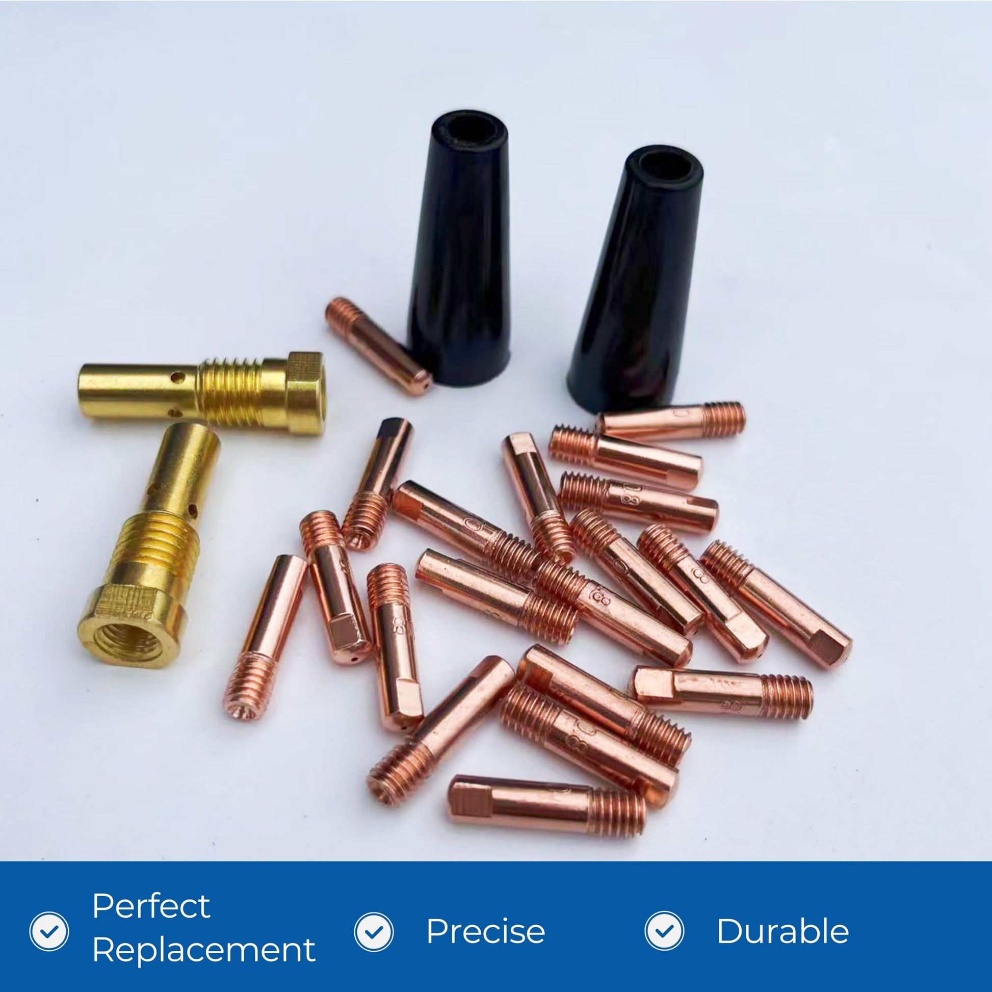 - 1.Package Includes 20× .030" (Ø0.8mm) welding tips,2×flux core gasless nozzle, 2×gas diffusers(with left-handed threads), totaling 24 components to meet more of your needs.