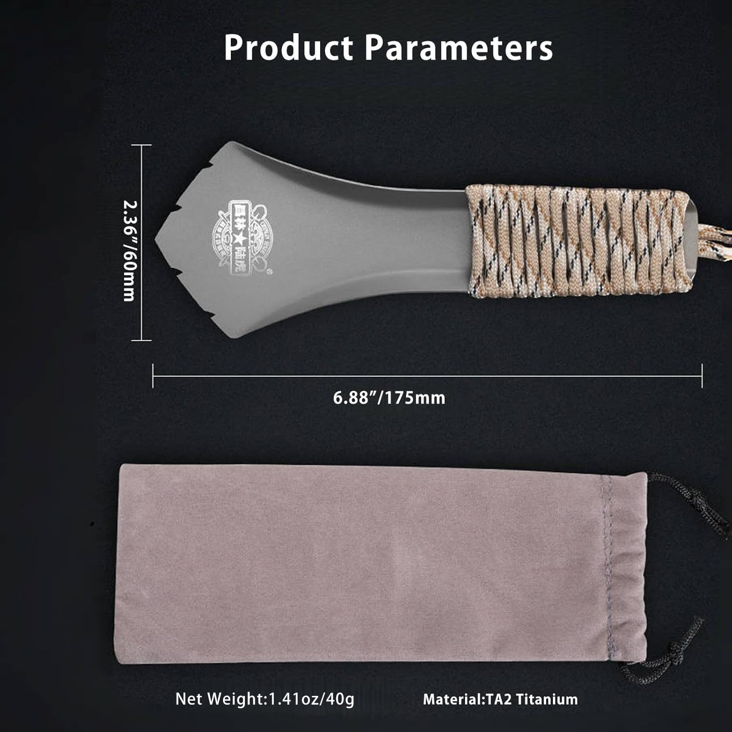 - This camping shovel is made of TA2 titanium with a 1mm thick head for high strength and wear resistance, perfect for a variety of outdoor tasks