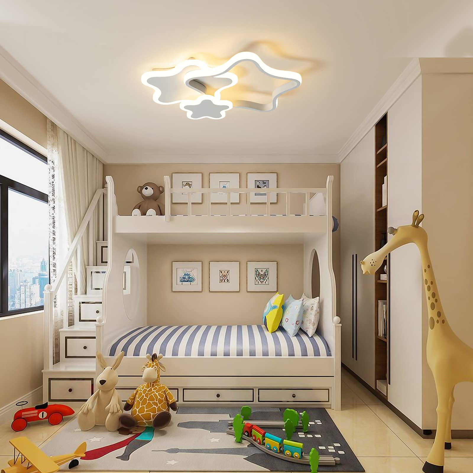 - Creative Star LED Ceiling Lamp: Lamp Body Dimension: 16.5in/42cm(L), 13in/33cm(W), 2.4in/6cm(H). Lamp Chassis: 6.7in/17cm(D). Designed with unique star shape, this modern led ceiling light is a cute room decoration and lighting, making boys and girls room more beautiful and lovely.