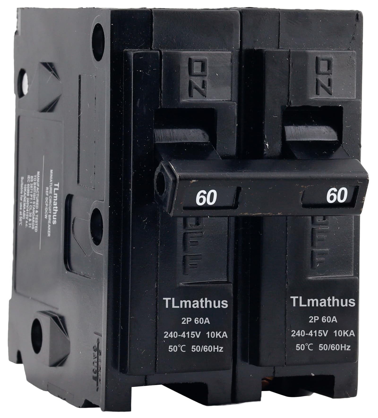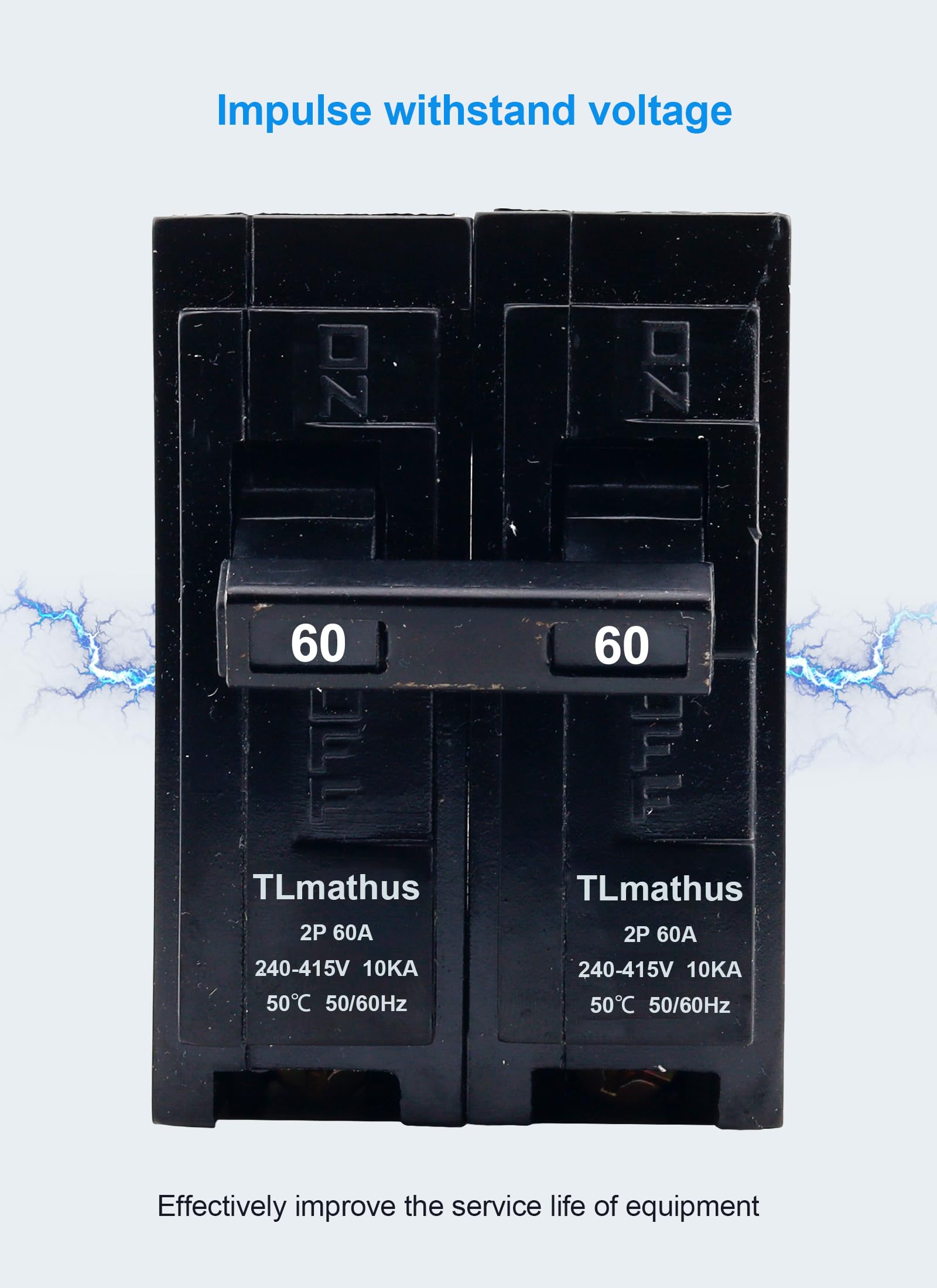 - 60 amp breaker 2 pole is made of high quality insulation material. Insulation safety, fireproof and anti-drop, strong oxidation resistance and long service life.Produced by TLmathus professional manufacturer.