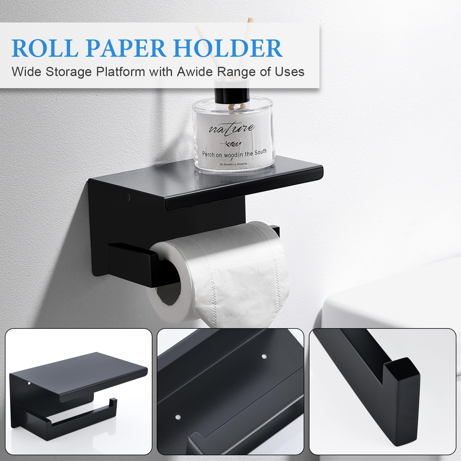 - Toilet paper holder with shelf, it is convenient for you to put cell phone, fragrance and other items while putting rolling paper.