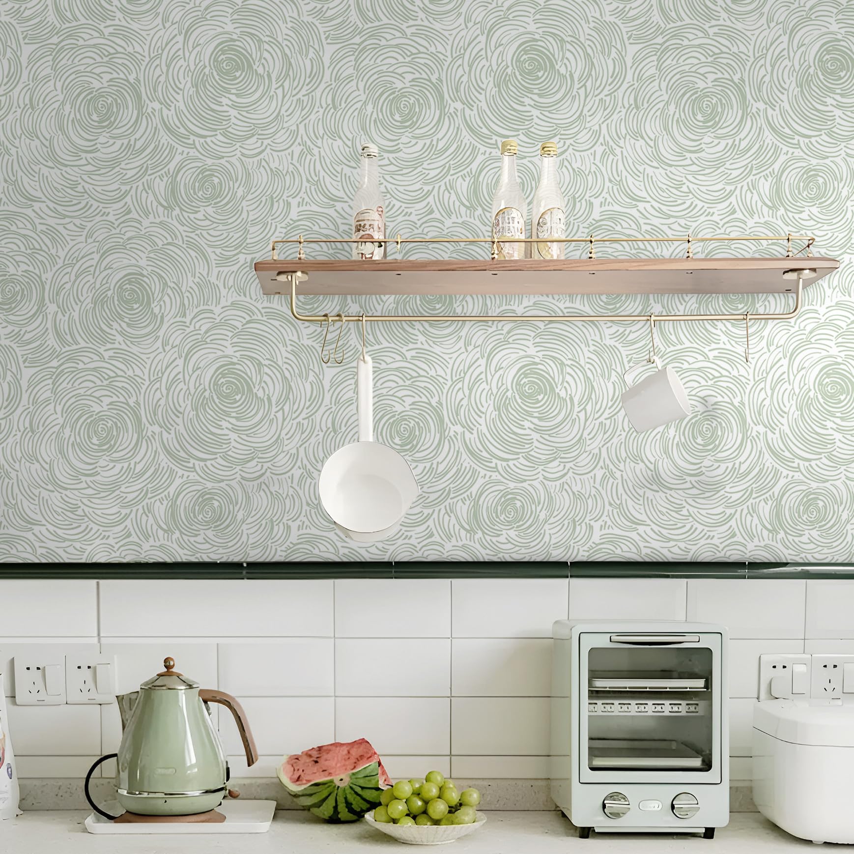 - Unique Design: This design combines modern simplicity with natural. The green stripe on the white background create an organic rhythm similar to the growth of vines or the rippling of water waves, making it suitable for creating a fresh yet design atmosphere in the interior