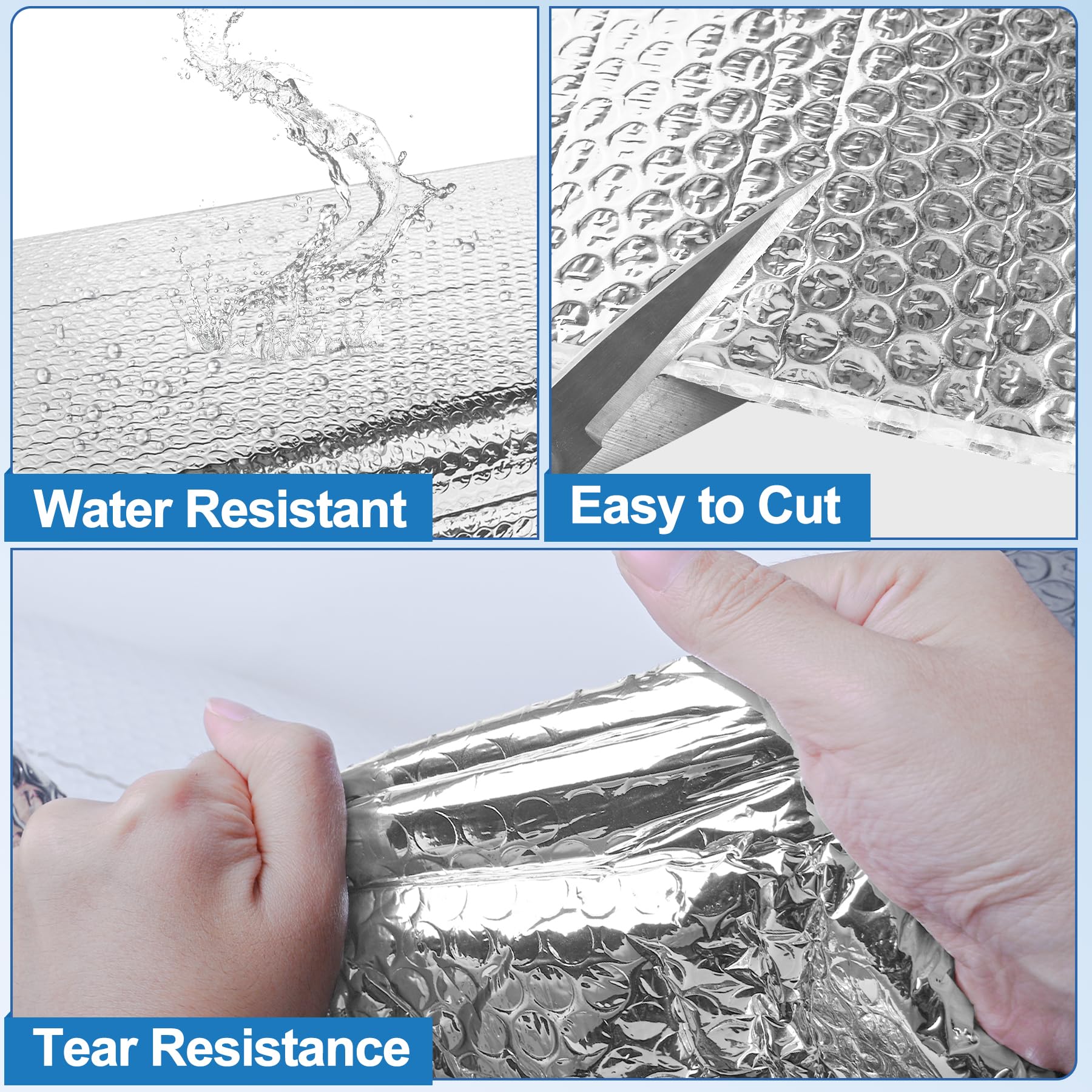 - 【Easy to Install】Bubble insulation roll is lightweight, soft and easy to cut. Easily cut the size you want. Peel off supplied adhesive tapes to install. Barrier insulation roll is easy to maintain and water resistant. Reflective insulation sheet will not be exposed to dampness after installation. Good choice for long term use