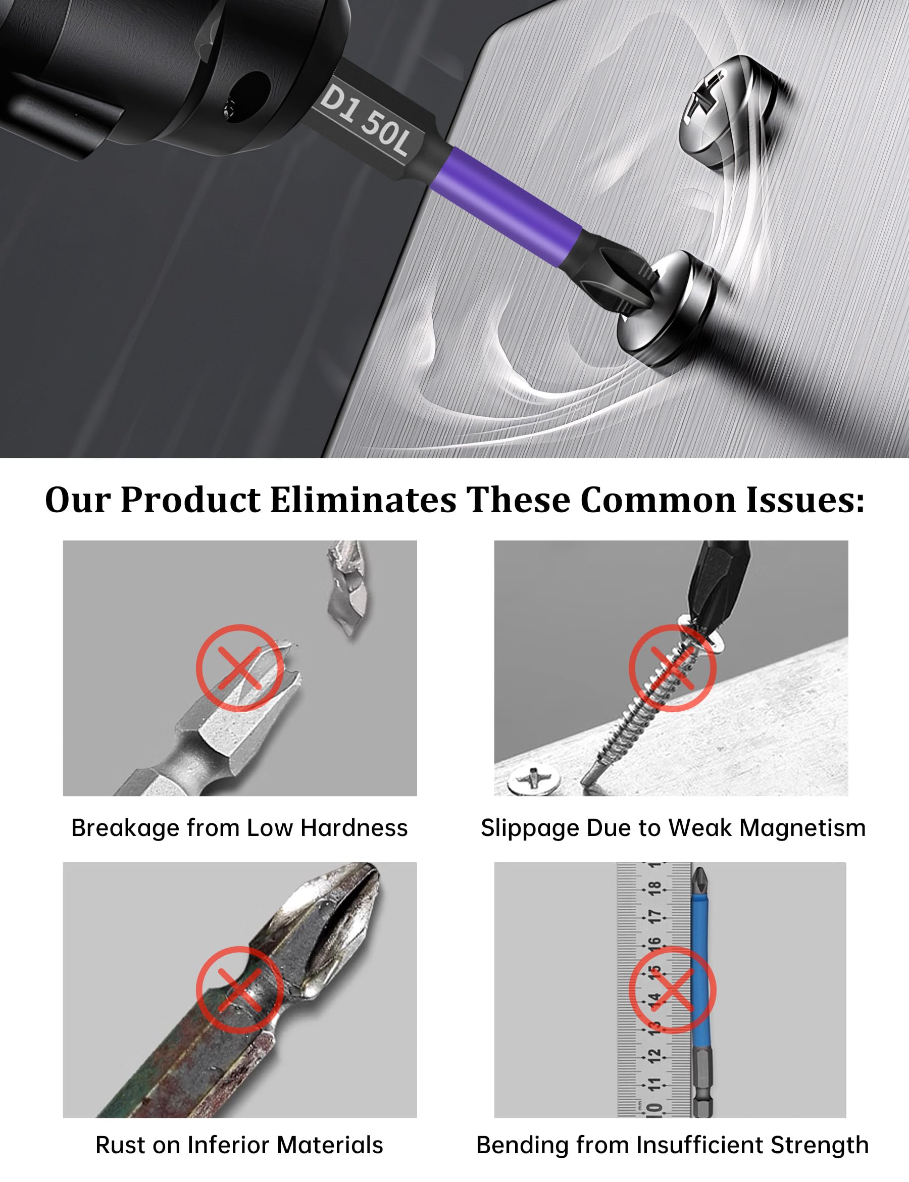 - Heavy-Duty Magnetic Screwdriver Kit - Equipped with strong magnetism and anti-slip tips, these bits ensure precise screw locking, reducing slippage and improving efficiency.