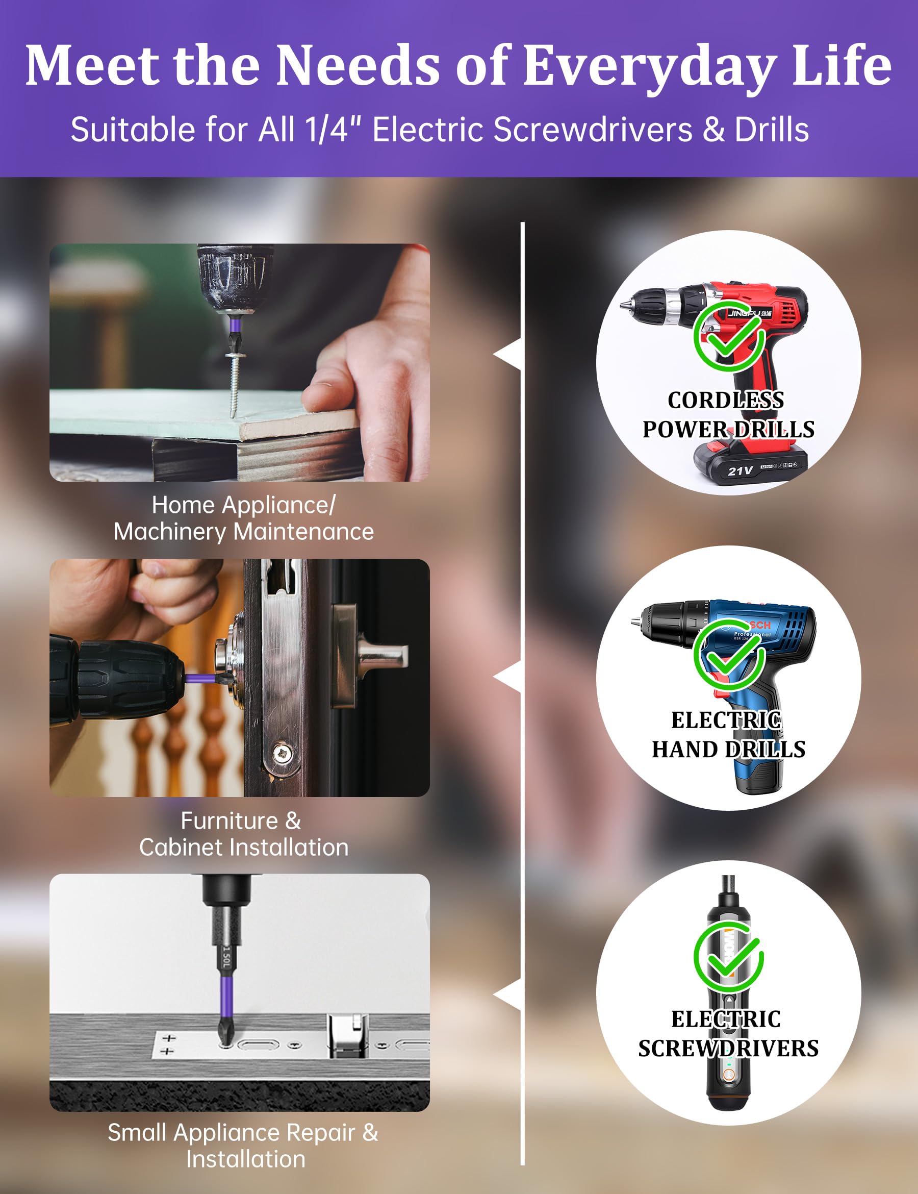 - Upgraded, Versatile Drill Bits - With a variety of lengths, these bits are suitable for both delicate and heavy-duty tasks, meeting all daily needs.