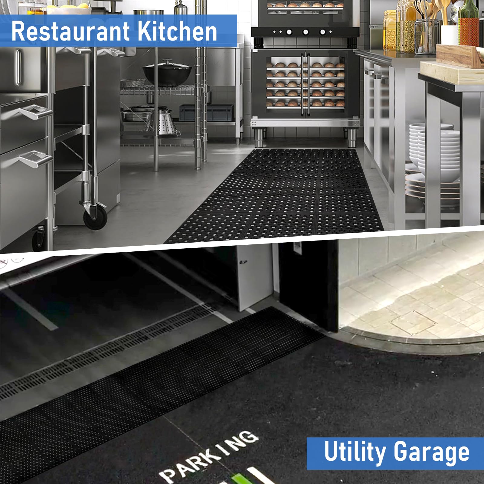 - Multi-Surface Anti-Fatigue Solution: Dual-textured surface combines restaurant-grade traction with cushioned support. Use as garage rubber mats, commercial door mats, or pet station flooring