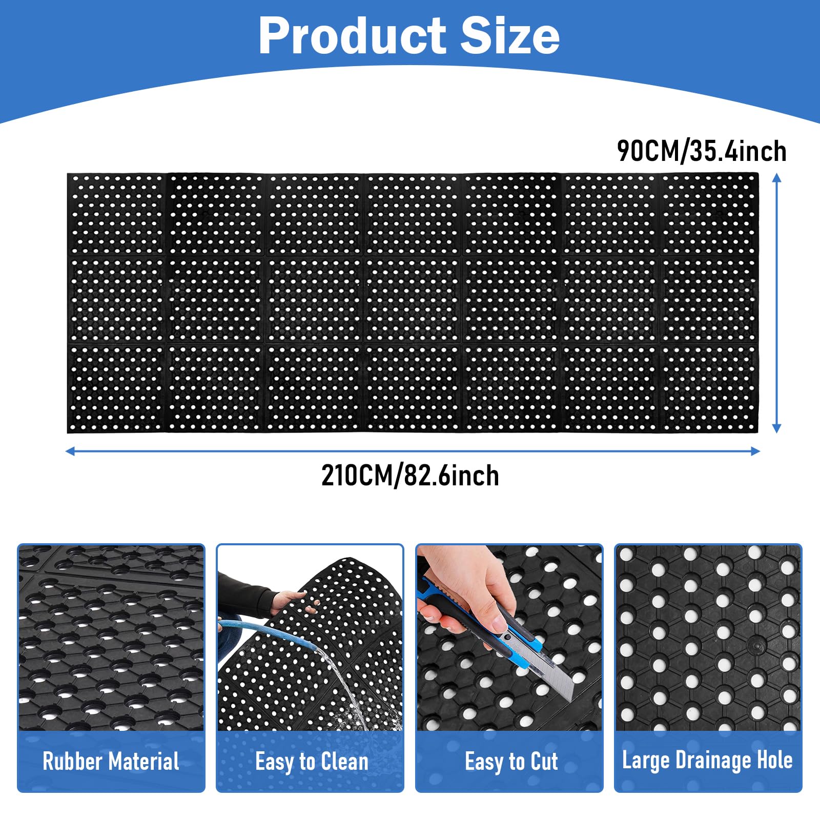 - Rapid-Drain Hole System: Large 0.4diameter drainage holes in our rubber mat with holes channel spills 30% faster than standard mats. Perfect as non-slip kitchen floor mats for wet areas, it keeps surfaces dry while trapping debris in open-grid channels