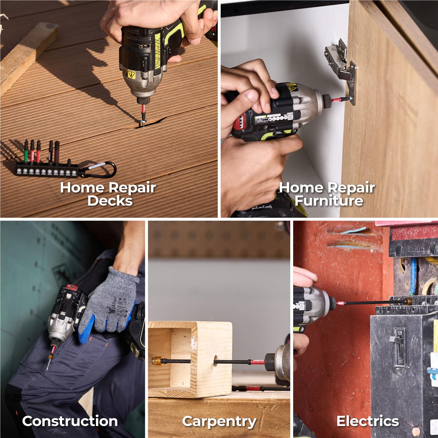 - Wide Application: Perfect for roberston/square screws in home repair (decks, furniture, etc.), construction, carpentry, electrics, auto (RV, etc.) and other screw driving applications.