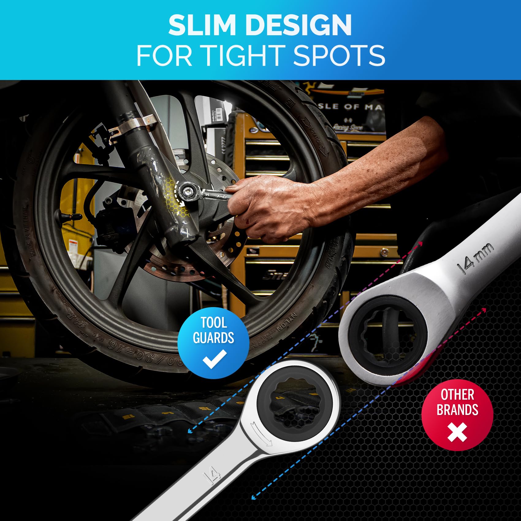 - Precision Tools | Tool Guard open end ratchet wrench sets have 72-tooth ratchet gears giving them a precise working swing arc of only 5-degrees. Specially designed full-drive box ends deliver reliable torque to tighten or loosen any bolt without rounding.